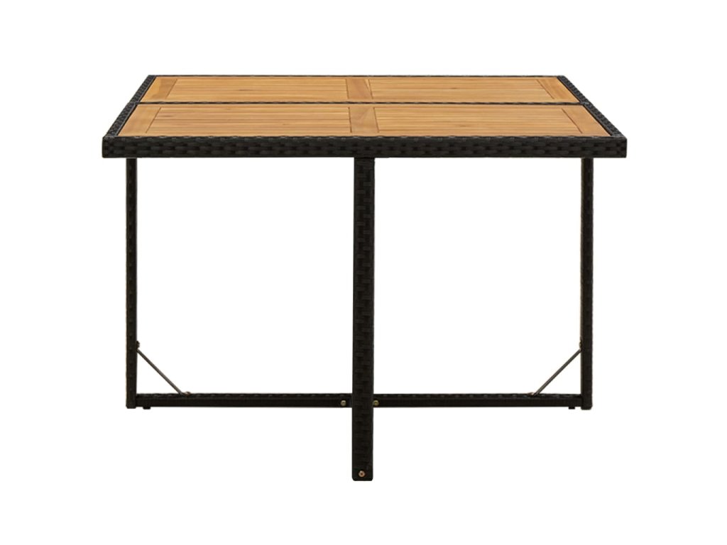Tento venkovní stůl je zhotoven z PE ratanu odolného vůči povětrnostním vlivům, takže se snadno čistí a bude vám dlouho sloužit. Ocelový rám s práškovým nástřikem a dřevěná stolní deska dodávají stolu na robustnosti a stabilitě. Stolní deska se skvěle hodí pro odložení či vystavení vašich nezbytností. Tento venkovní jídelní stůl má navíc lehkou konstrukci, proto jej můžete velmi snadno přemisťovat.