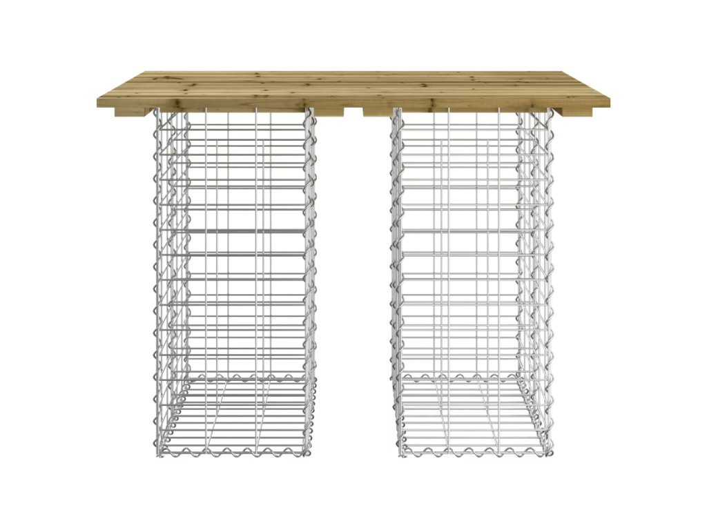 - Robustní a stabilní základna: Tato venkovní lavice je vybavena základnou z pozinkovaného ocelového gabionového koše, který je navržen tak, aby jej bylo možné naplnit kameny a štěrkem pro atraktivnější vzhled. Mřížku gabionového koše tvoří podélné a svislé drátky, které jsou navíc v každém spoji svařené pro lepší stabilitu.