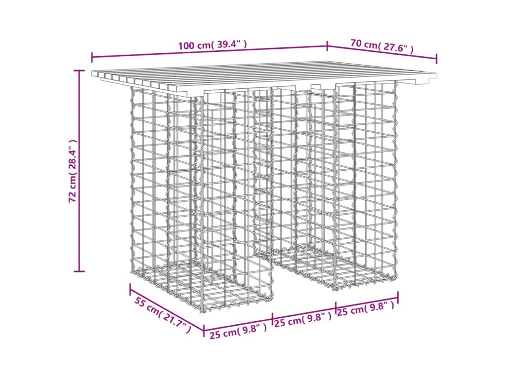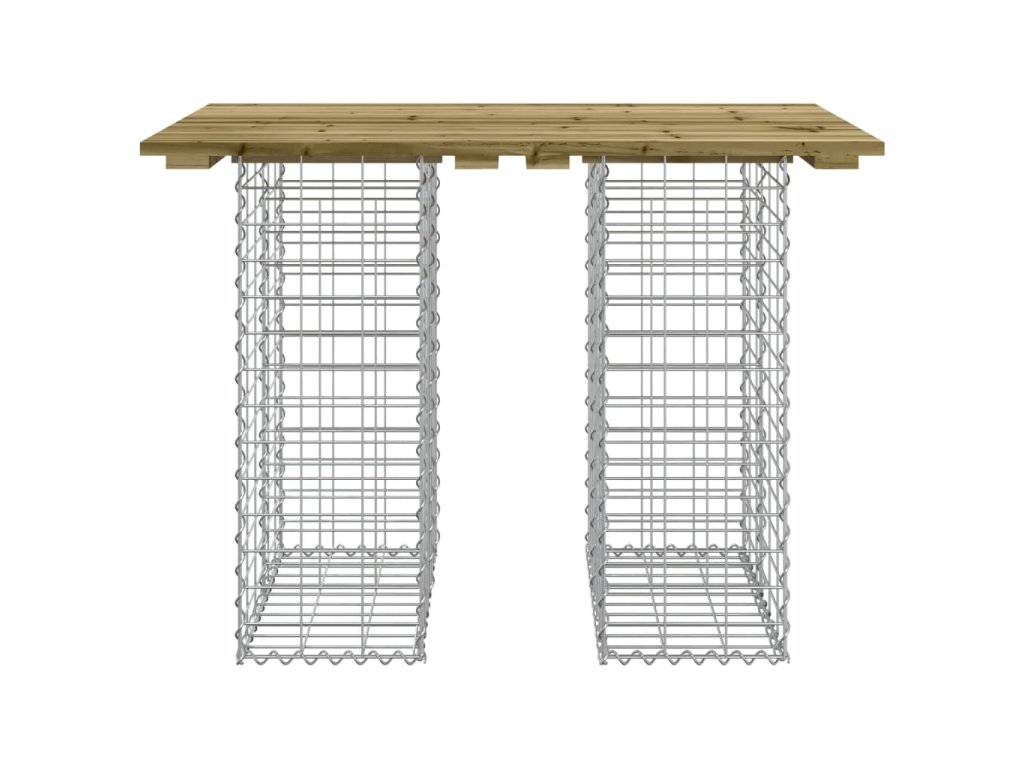- Robustní a stabilní základna: Tato venkovní lavice je vybavena základnou z pozinkovaného ocelového gabionového koše, který je navržen tak, aby jej bylo možné naplnit kameny a štěrkem pro atraktivnější vzhled. Mřížku gabionového koše tvoří podélné a svislé drátky, které jsou navíc v každém spoji svařené pro lepší stabilitu.