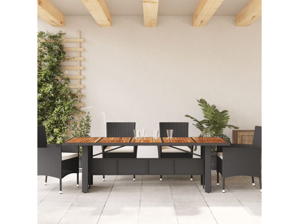 - Materiál: PE ratan, práškově lakovaná ocel, masivní akáciové dřevo s olejovou povrchovou úpravou