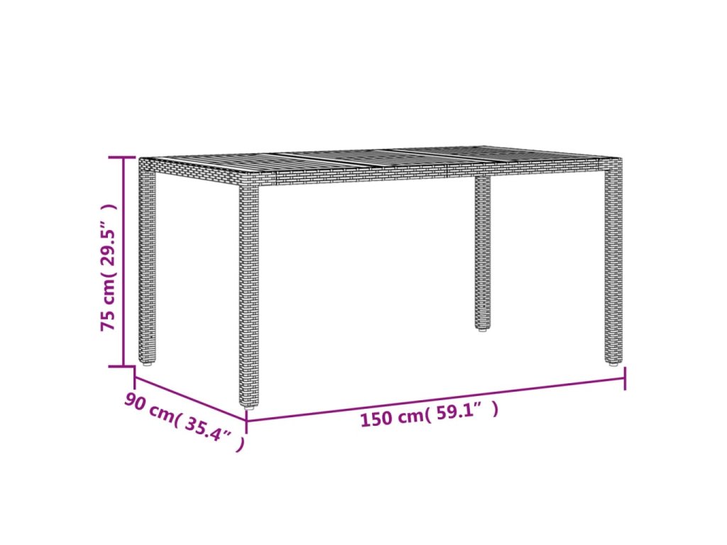 - Materiál: PE ratan, práškově lakovaná ocel, masivní akáciové dřevo s olejovou povrchovou úpravou