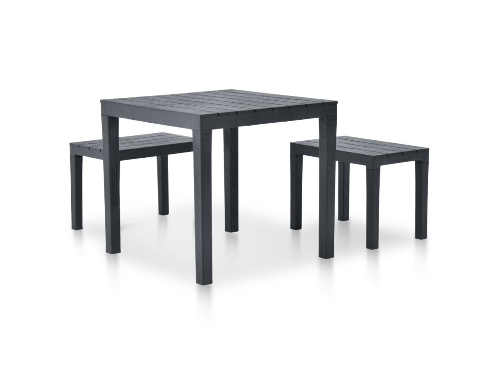 Zahradní set je vyrobený z bezúdržbového plastu, který výborně vzdoruje nepřízni počasí, je vysoce odolný a hodí se pro každodenní použití. Lavice se širokými sedáky nabízí dostatek místa pro vaši rodinu a přátele. Montáž není nutná.