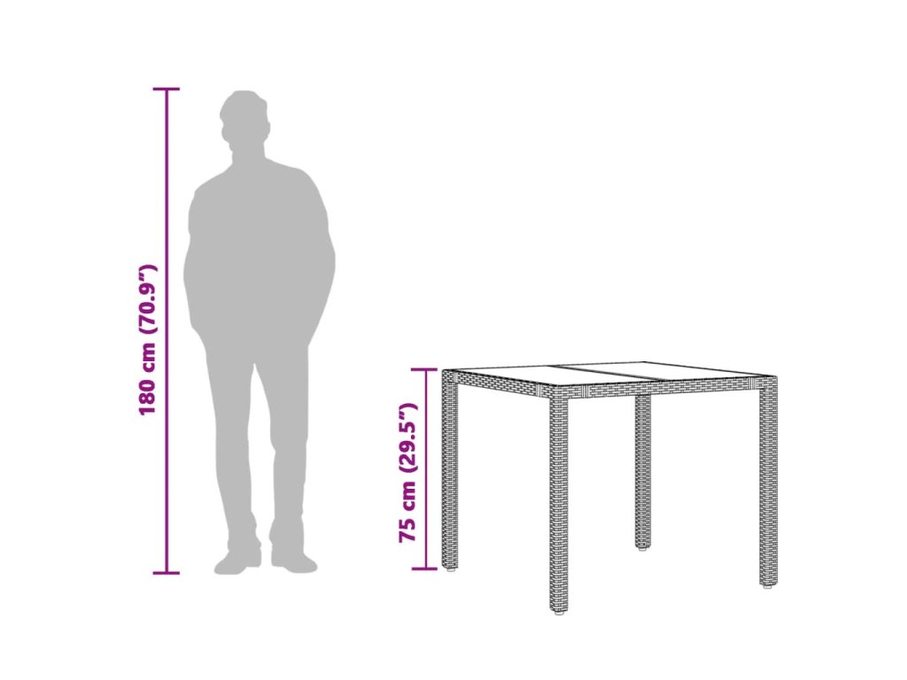 - Skleněná deska stolu: Deska venkovního stolu je zhotovena ze silného a odolného tvrzeného skla, takže ji snadno očistíte vlhkým hadříkem a zároveň do vašeho venkovního prostoru vnese nádech elegance.