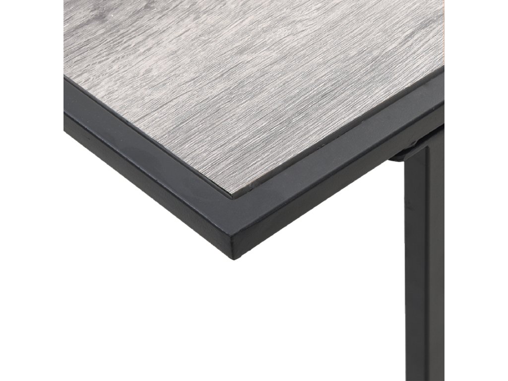 Tento šedý obdélníkový stůl představuje styl a praktičnost pro váš venkovní prostor. Je skvělý na jídlo nebo odpočinek. Moderní design s hladkým šedým dřevěným povrchem a matným černým ocelovým rámem dodává krásu zahradám, balkonům a terasám. Je ideálním místem pro jídlo a povídání na čerstvém vzduchu.