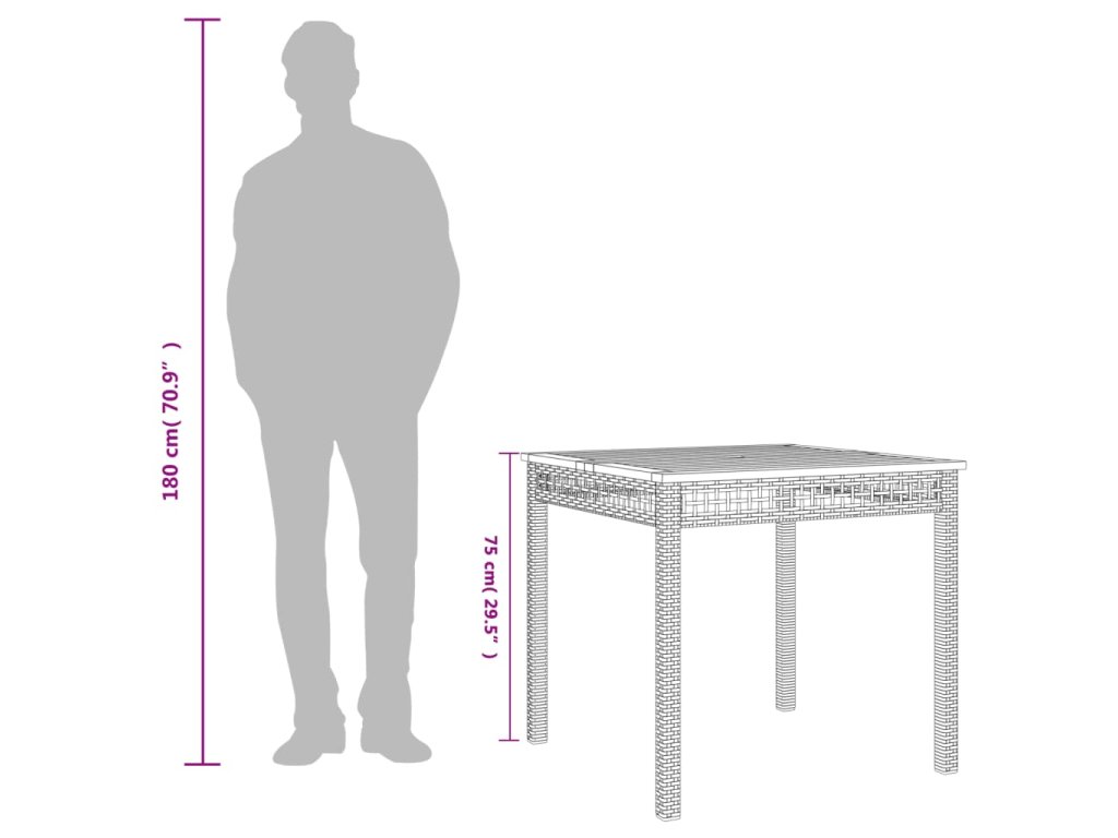 - Materiál: PE ratan, práškově lakovaná ocel, masivní akáciové dřevo s přírodní povrchovou úpravou