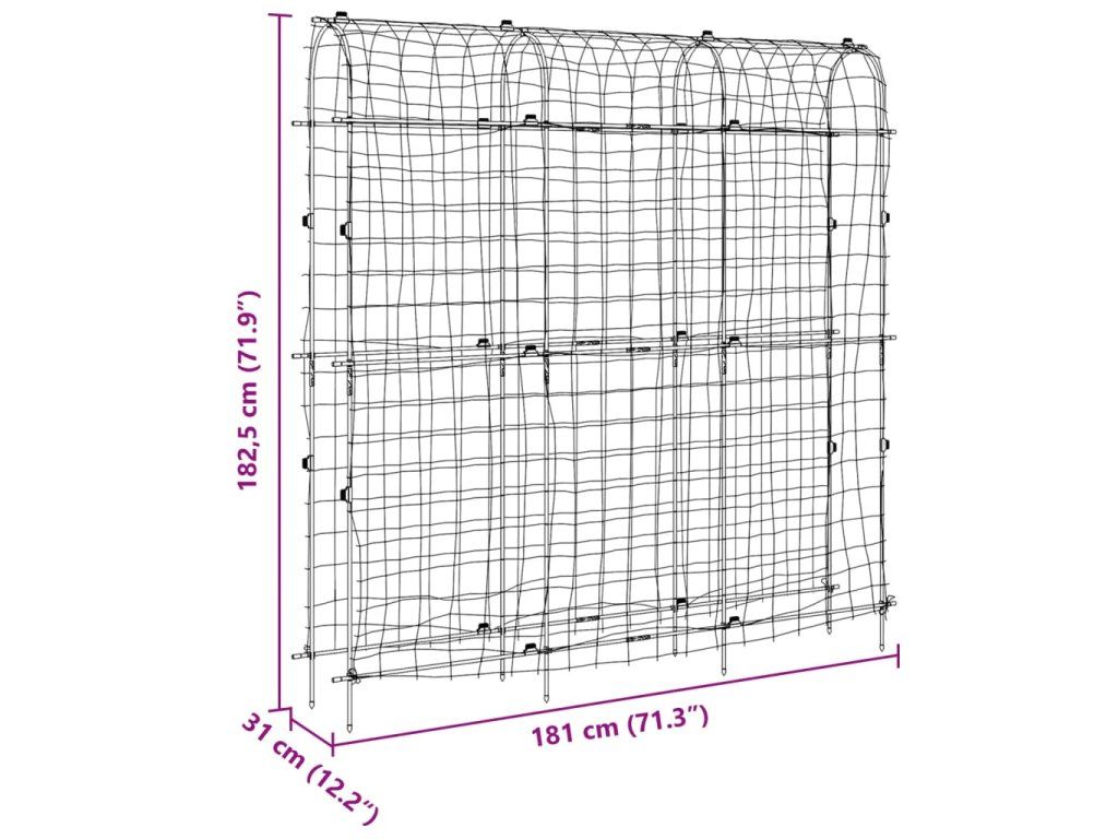 - Praktický design: Zahradní treláž se sítí zabraňuje padání rostlin a plodů a usnadňuje sklizeň. Navíc je vybavena sponami pro upevnění a vedení rostlin.
