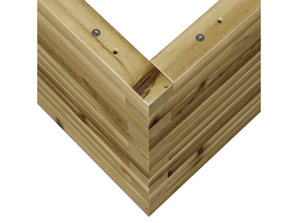 - Robustní a stabilní rám: Masivní borové dřevo je známé svou pevností a odolností. Jeho rovná textura a výrazné suky přispívají k jeho rustikálnímu vzhledu. Impregnace je konzervační proces, který se provádí pomocí autoklávu. Tlaková úprava zvyšuje odolnost proti trouchnivění a počasí.