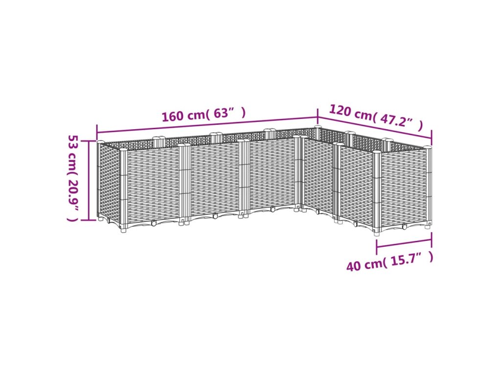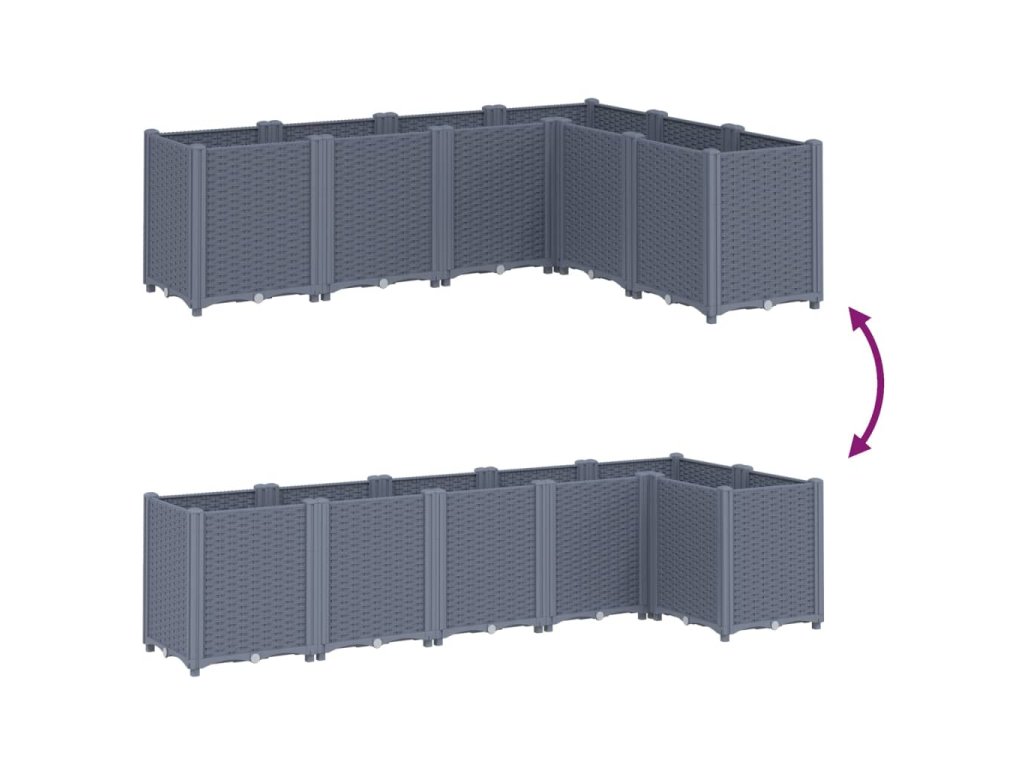 - Modulární provedení: Tento truhlík se skládá ze 6 květináčů, které lze libovolně kombinovat podle vašich potřeb.