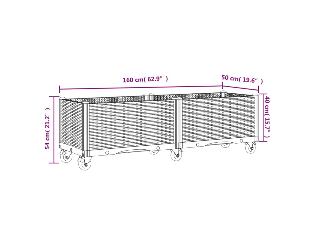 - Praktický design: Ideální dno pomáhá zadržovat vlhkost a umožňuje snadný odvod vody. Vestavěná treláž navíc nabízí oporu pro růst popínavých rostlin, jako jsou rajčata, hrášek nebo růže.