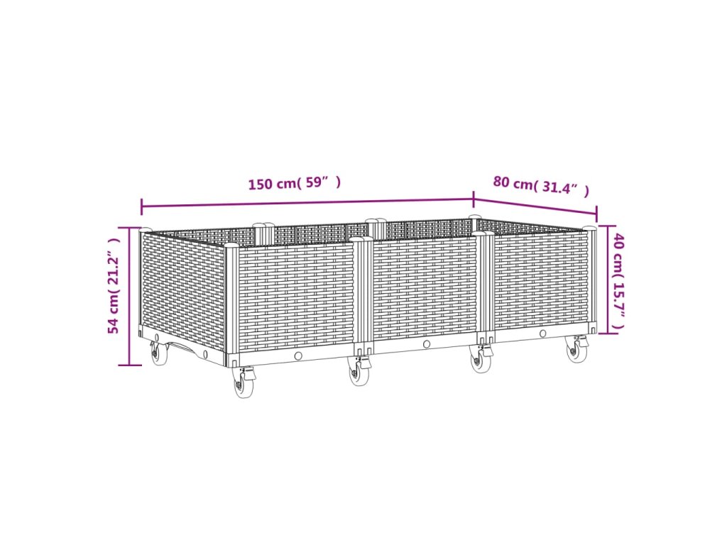- Praktický design: Ideální dno pomáhá zadržovat vlhkost a umožňuje snadný odvod vody. Vestavěná treláž navíc nabízí oporu pro růst popínavých rostlin, jako jsou rajčata, hrášek nebo růže.