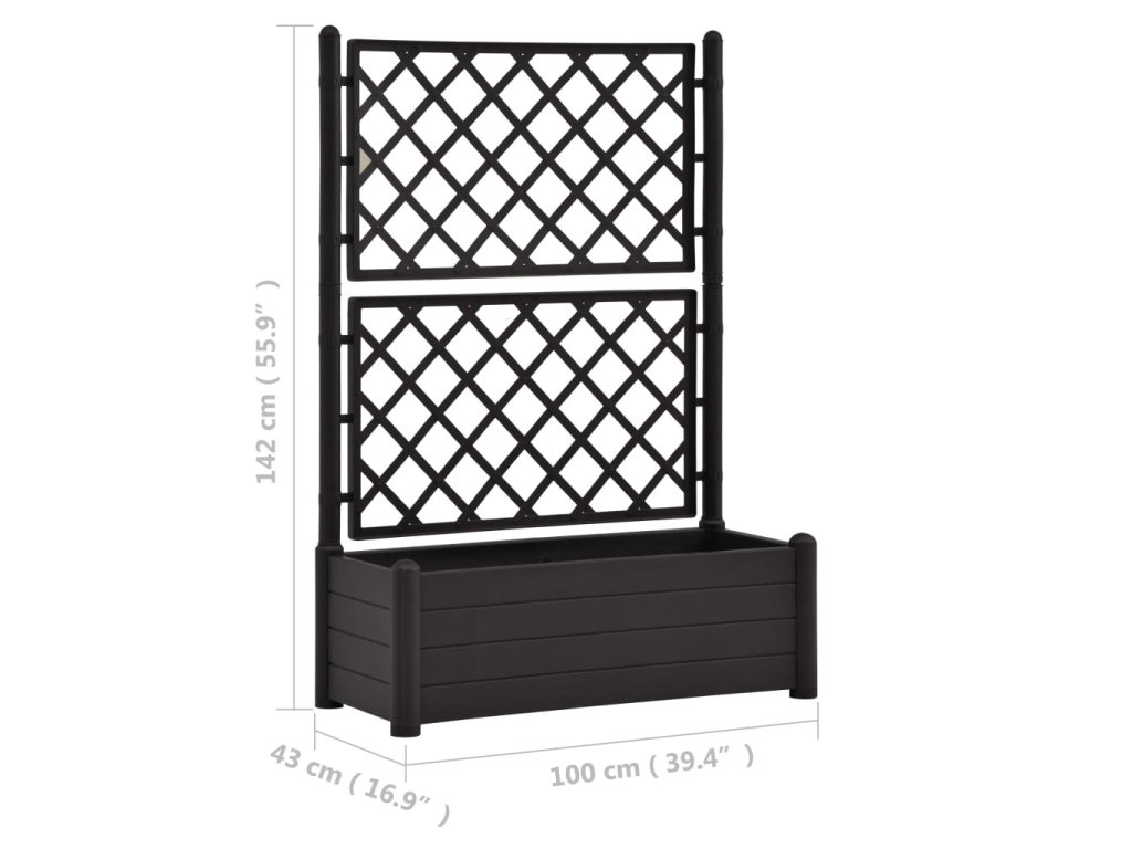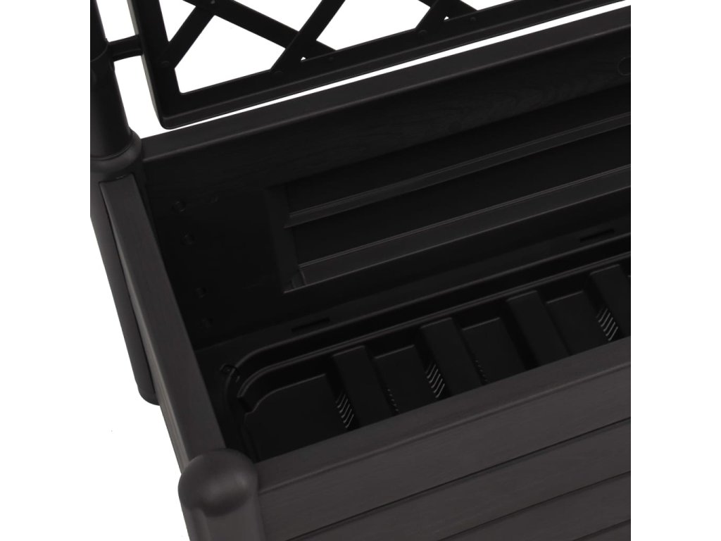 Vyvýšený záhon, vyrobený z klimaticky odolného PP materiálu, je lehký a vhodný pro venkovní použití. Prostorný truhlík s kapacitou 90 litrů pojme značné množství zelených rostlin a květin. Integrovaná treláž nabízí skvělou oporu pro popínavé rostliny, které, až se rozrostou po treláži a rozkvetou, vytvoří působivou a voňavou dekoraci.
