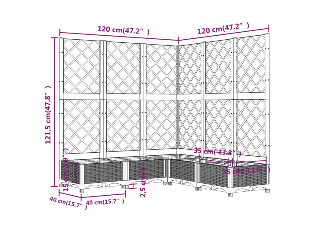 - Užitková treláž: Integrovaná treláž nabízí skvělou oporu pro pěstování popínavých rostlin, jako jsou rajčata, hrášek a růže.