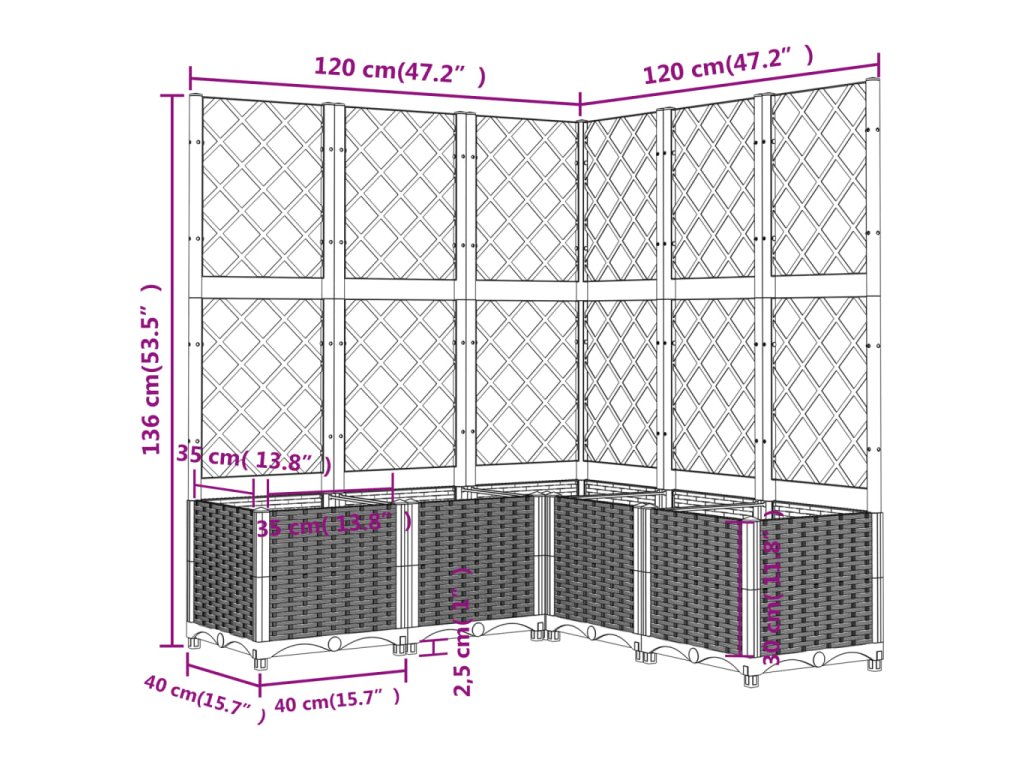 - Užitková treláž: Integrovaná treláž nabízí skvělou oporu pro pěstování popínavých rostlin, jako jsou rajčata, hrášek a růže.