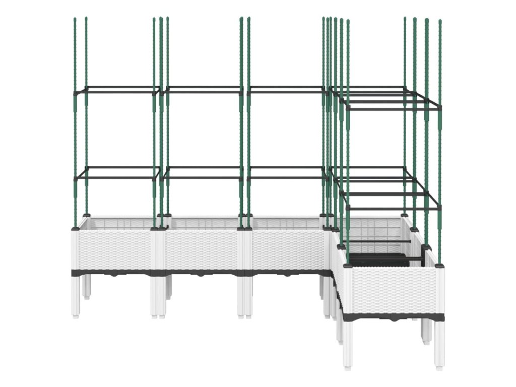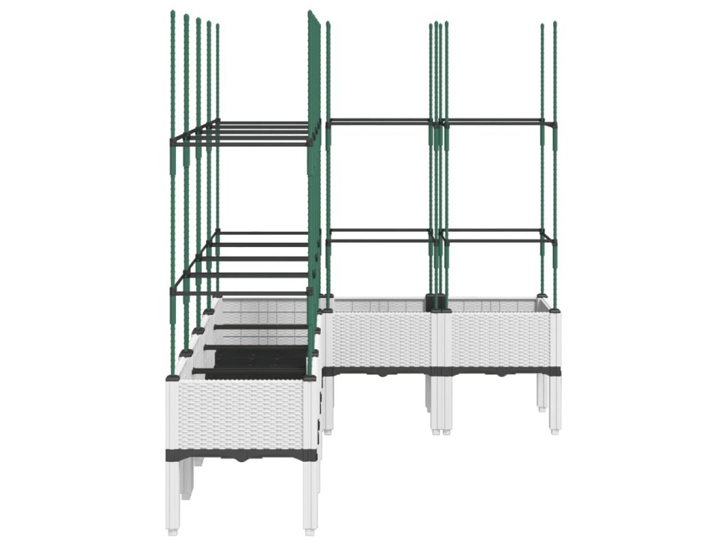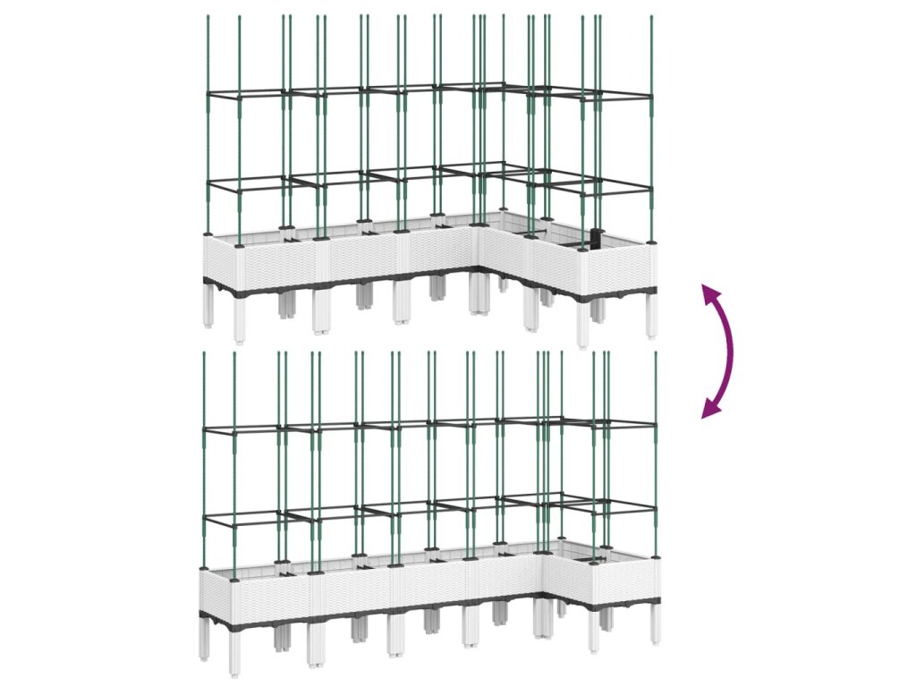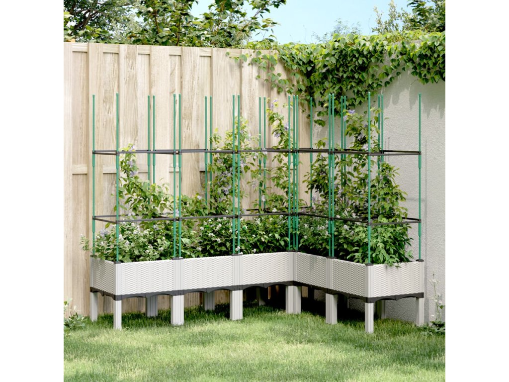- Praktický design: Ideální dno pomáhá zadržovat vlhkost a umožňuje snadný odvod vody. Vestavěná treláž navíc nabízí oporu pro růst popínavých rostlin, jako jsou rajčata, hrášek nebo růže.