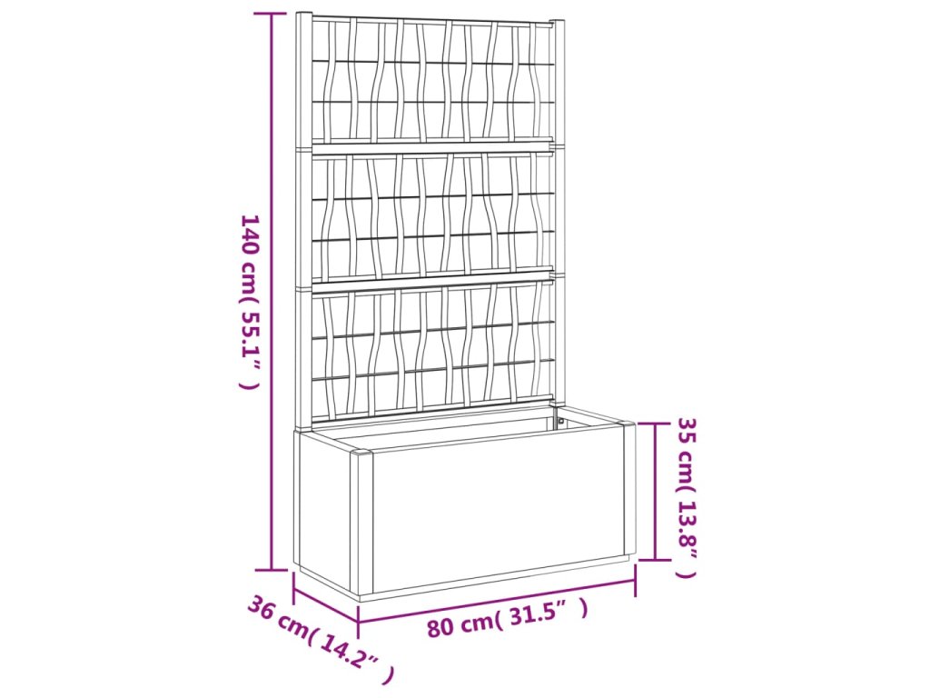 - Praktický design: Integrovaná treláž nabízí skvělou oporu pro pěstování popínavých rostlin, jako jsou rajčata, hrášek a růže.