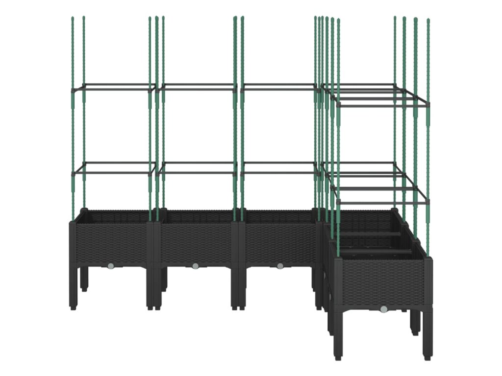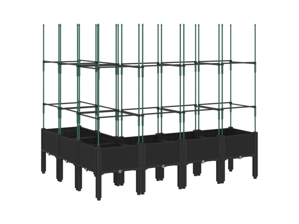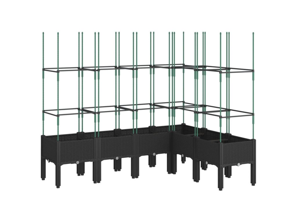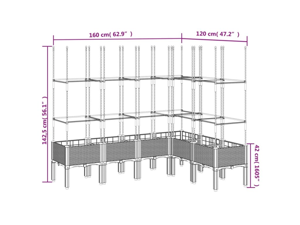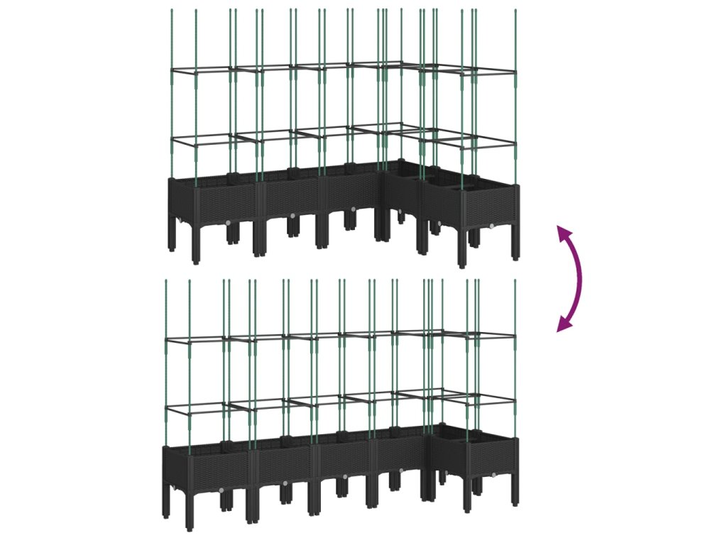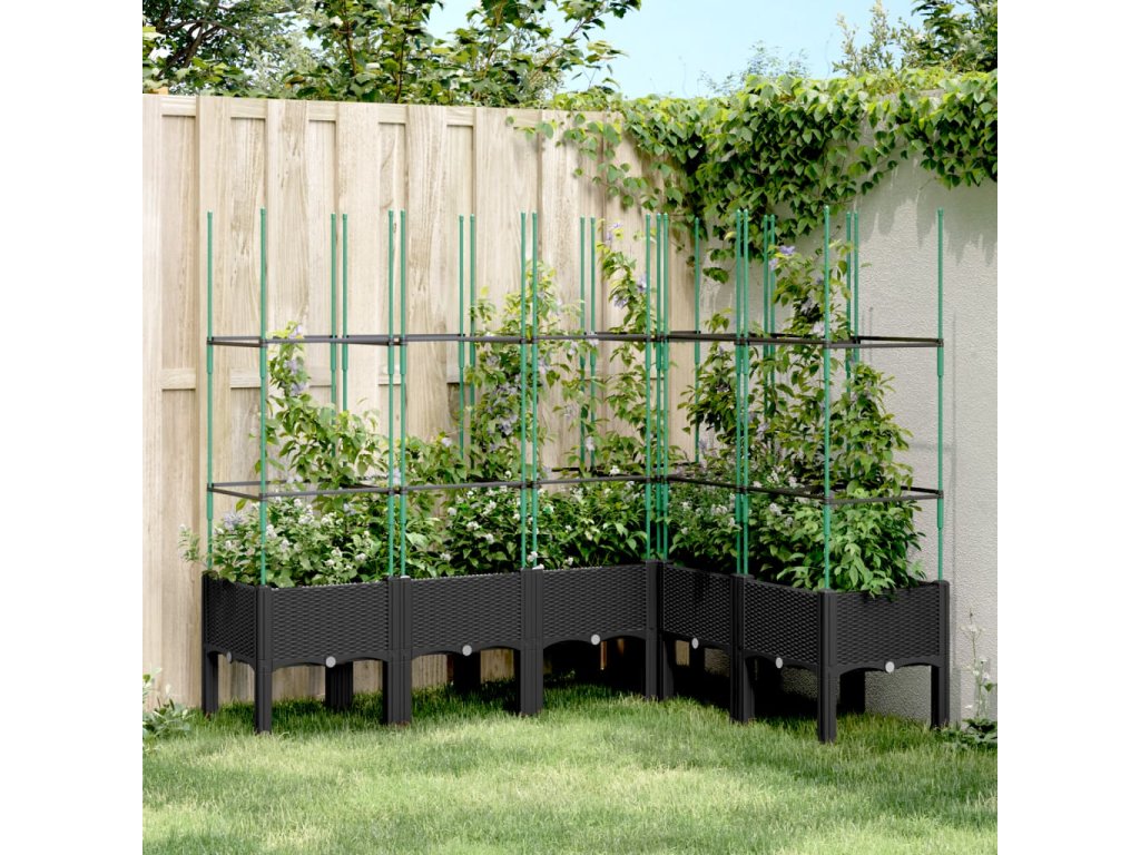 - Praktický design: Ideální dno pomáhá zadržovat vlhkost a umožňuje snadný odvod vody. Vestavěná treláž navíc nabízí oporu pro růst popínavých rostlin, jako jsou rajčata, hrášek nebo růže.