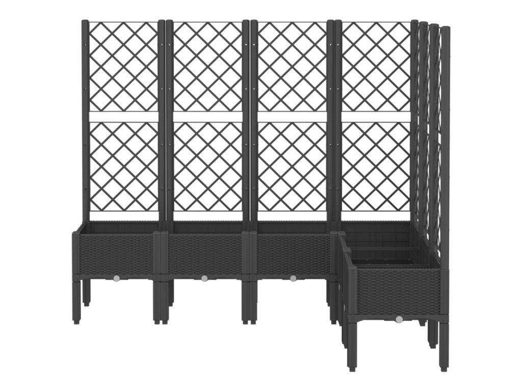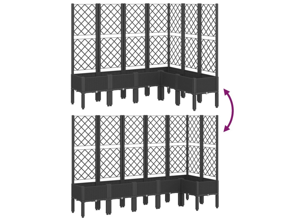- Praktický design: Ideální dno pomáhá zadržovat vlhkost a umožňuje snadný odvod vody. Vestavěná treláž navíc nabízí oporu pro růst popínavých rostlin, jako jsou rajčata, hrášek nebo růže.