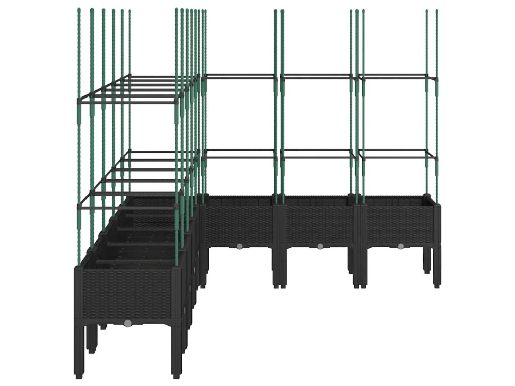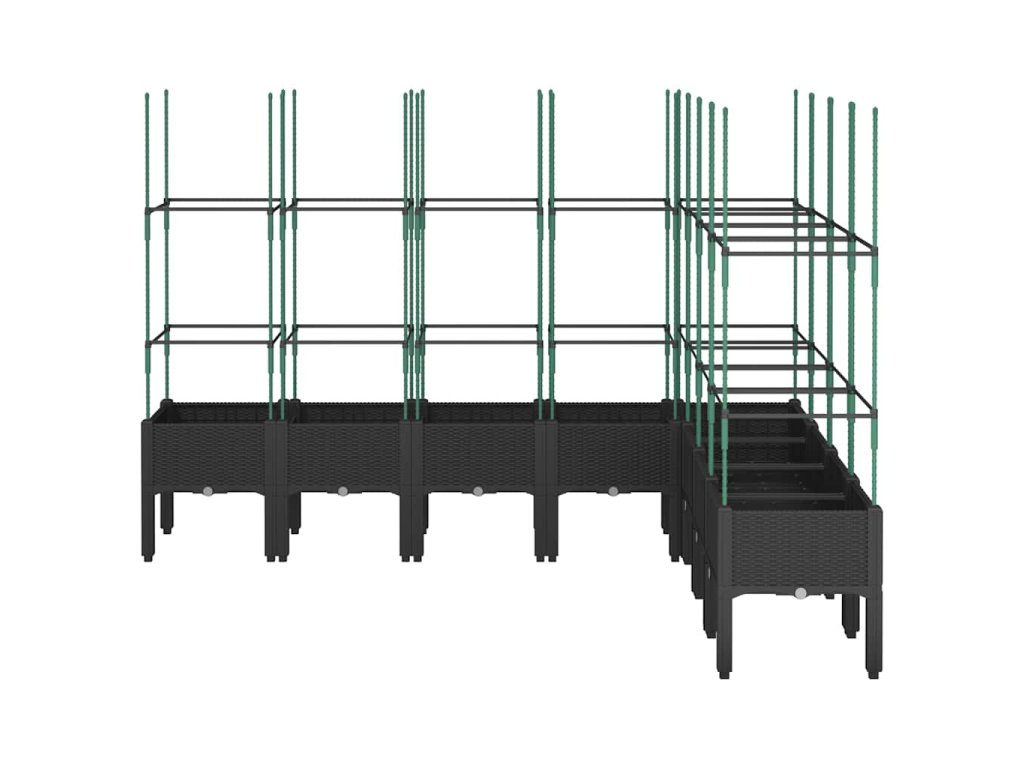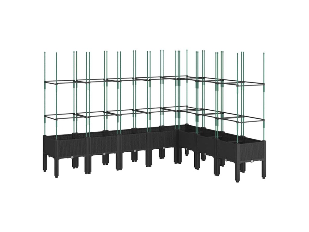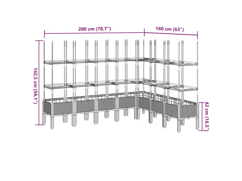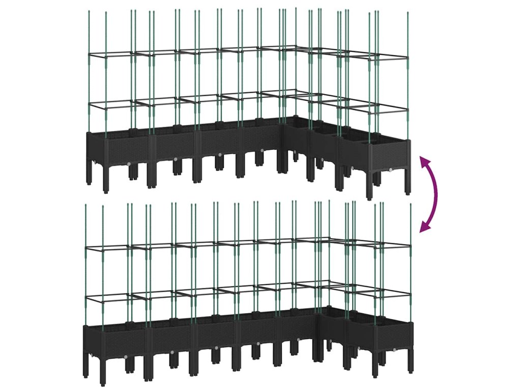 - Praktický design: Ideální dno pomáhá zadržovat vlhkost a umožňuje snadný odvod vody. Vestavěná treláž navíc nabízí oporu pro růst popínavých rostlin, jako jsou rajčata, hrášek nebo růže.