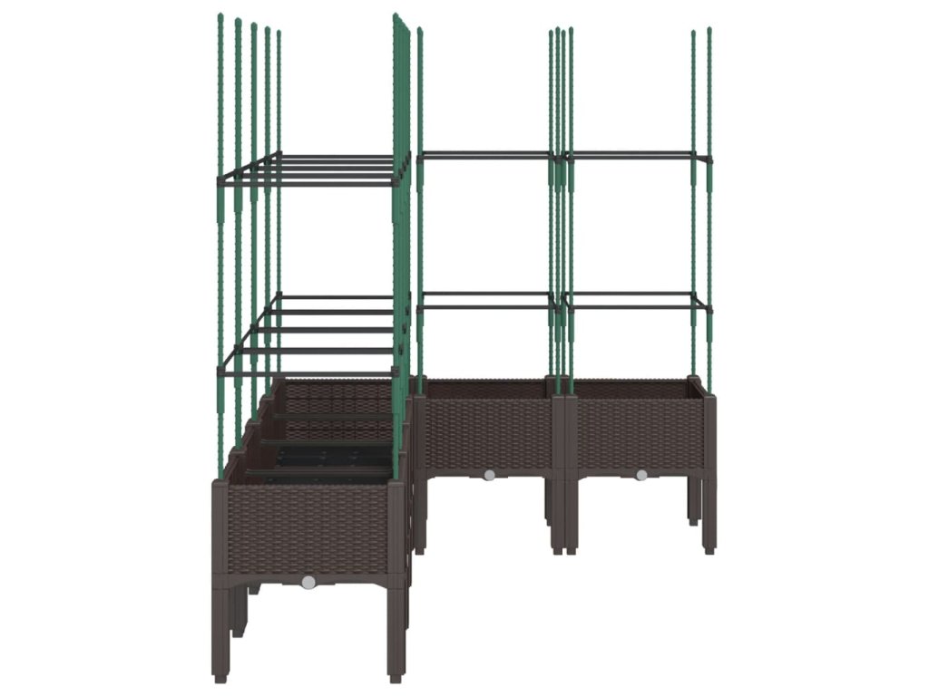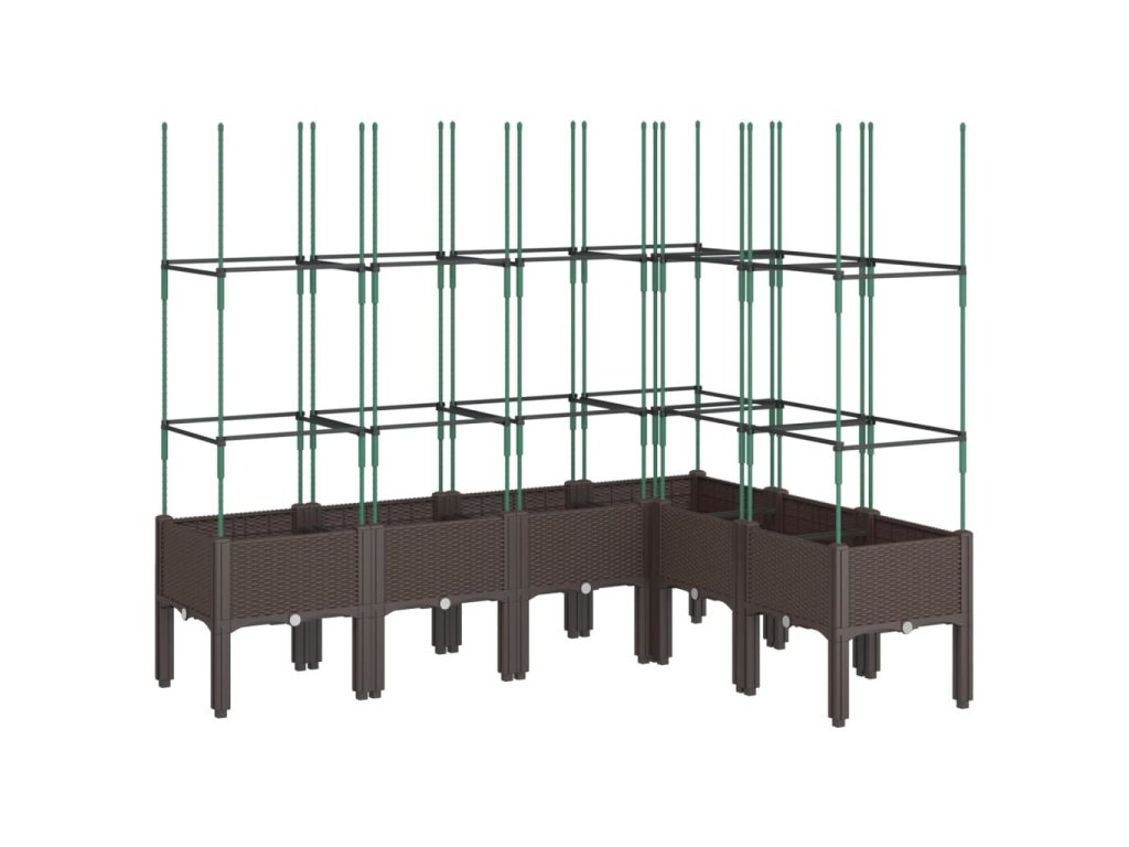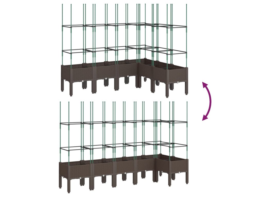 - Praktický design: Ideální dno pomáhá zadržovat vlhkost a umožňuje snadný odvod vody. Vestavěná treláž navíc nabízí oporu pro růst popínavých rostlin, jako jsou rajčata, hrášek nebo růže.