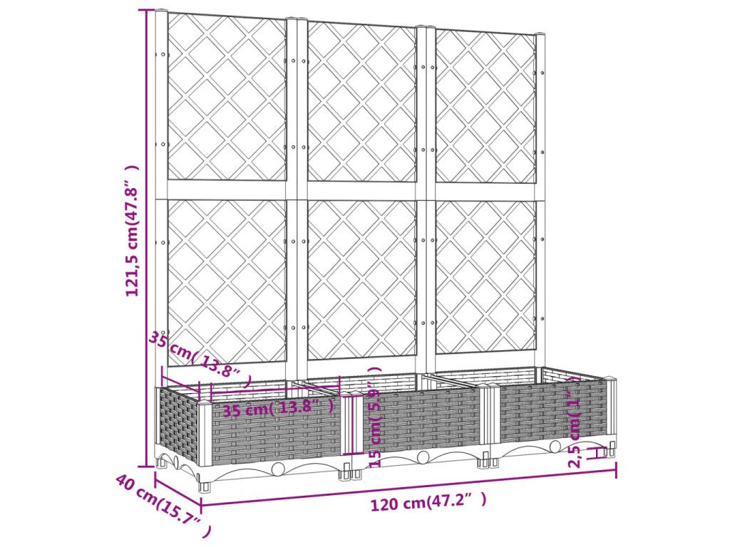 - Všestrannost: Integrovaná mříž nabízí skvělou oporu pro pěstování popínavých rostlin, jako jsou rajčata, hrášek a růže.