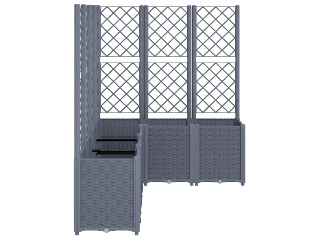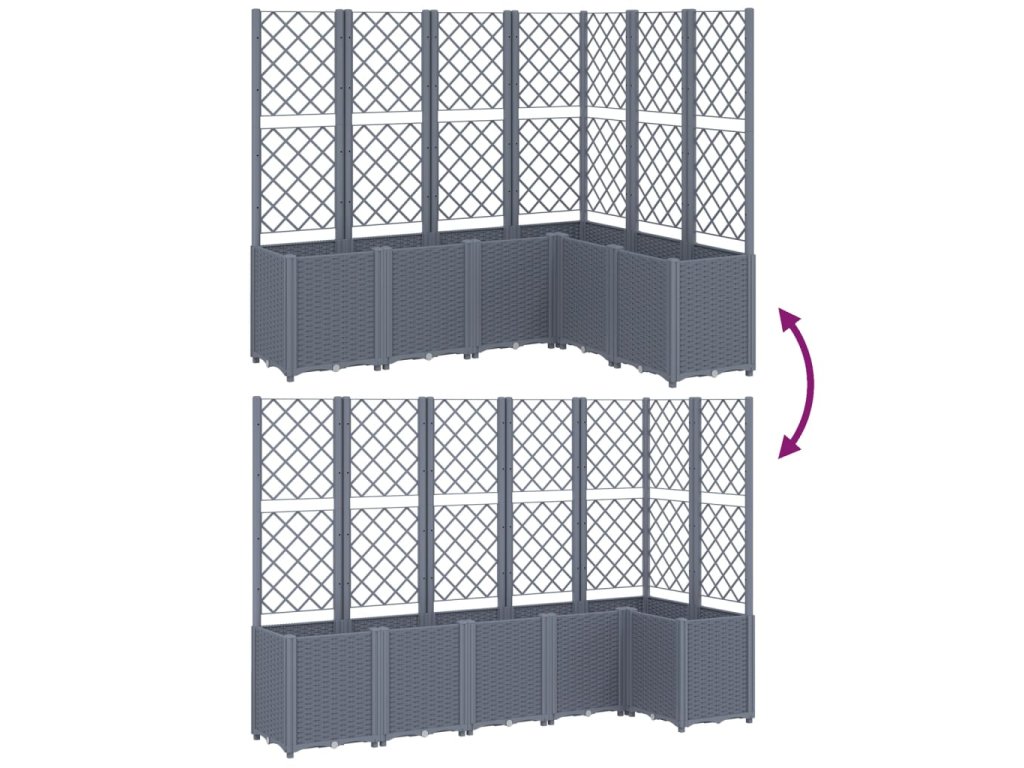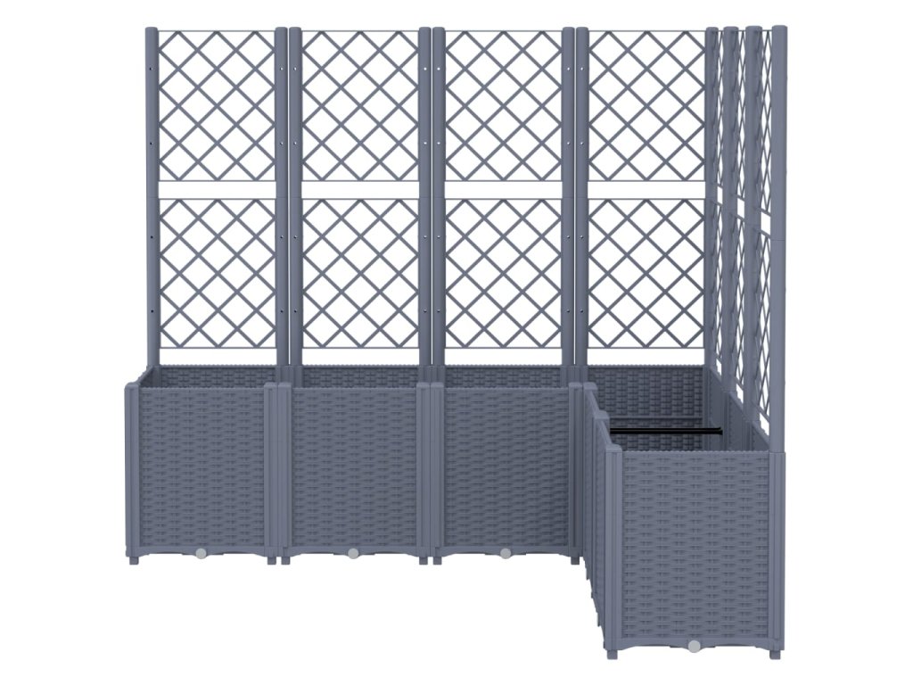 - Praktický design: Ideální dno pomáhá zadržovat vlhkost a umožňuje snadný odvod vody. Vestavěná treláž navíc nabízí oporu pro růst popínavých rostlin, jako jsou rajčata, hrášek nebo růže.