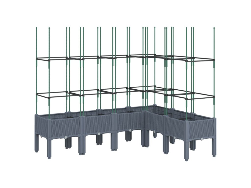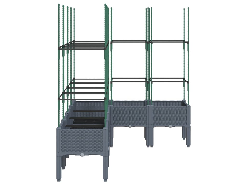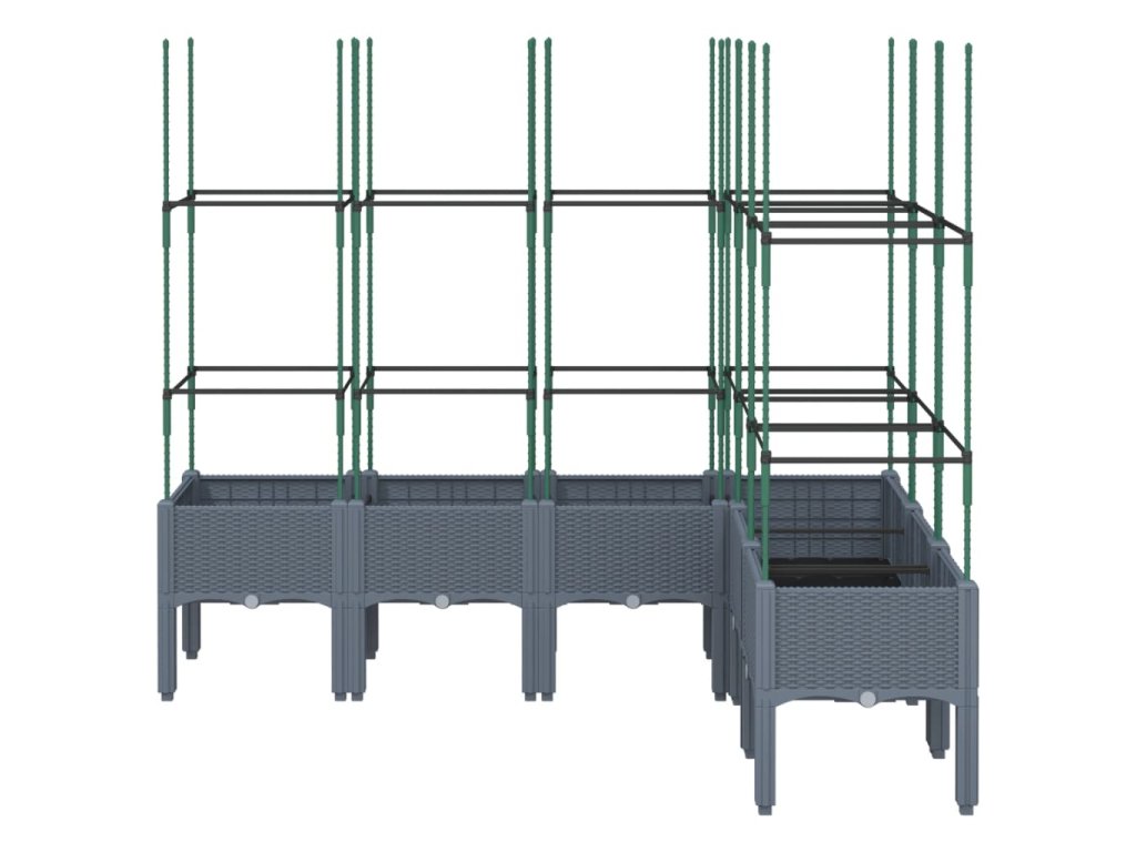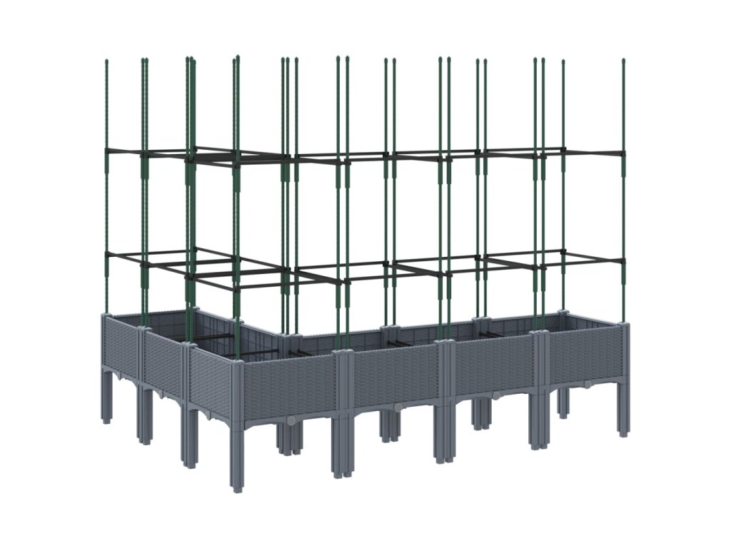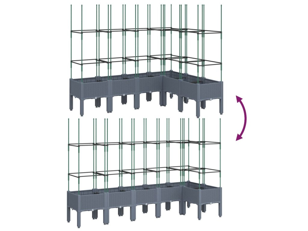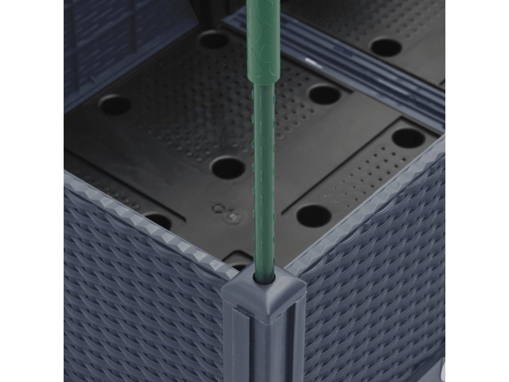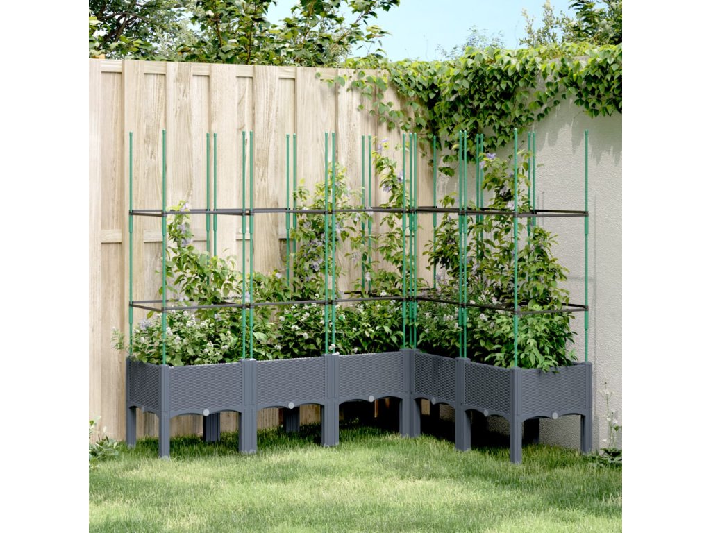 - Praktický design: Ideální dno pomáhá zadržovat vlhkost a umožňuje snadný odvod vody. Vestavěná treláž navíc nabízí oporu pro růst popínavých rostlin, jako jsou rajčata, hrášek nebo růže.