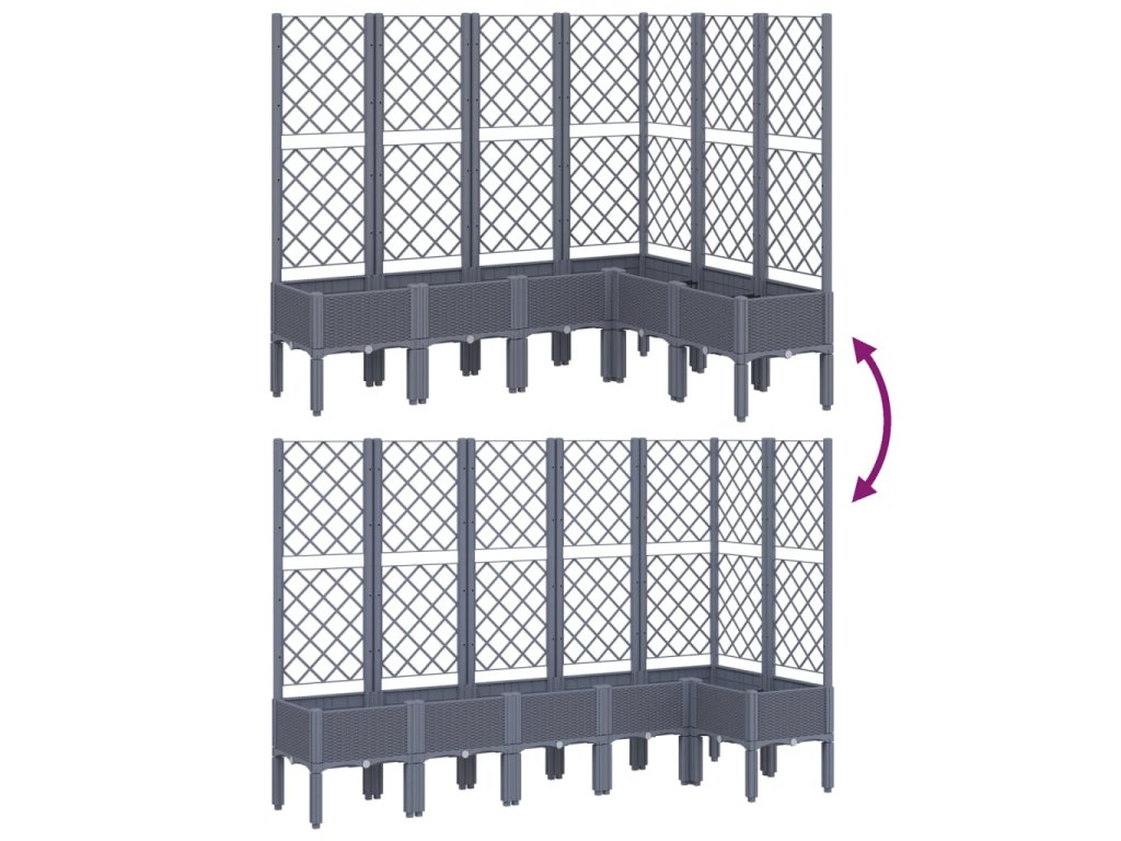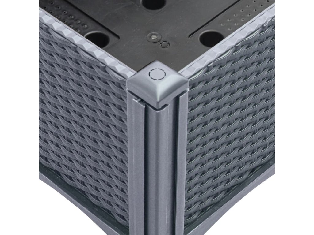 - Praktický design: Ideální dno pomáhá zadržovat vlhkost a umožňuje snadný odvod vody. Vestavěná treláž navíc nabízí oporu pro růst popínavých rostlin, jako jsou rajčata, hrášek nebo růže.
