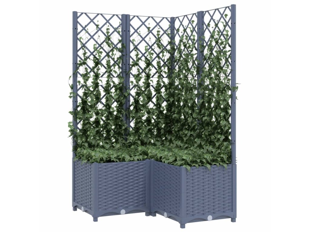 Truhlík je vyrobený z klimaticky odolného PP, je tedy pevný, robustní a vhodný pro venkovní použití. Do spodního květináče se vejde spousta zelených rostlin a květin. Vestavěná treláž zase nabízí oporu pro růst popínavých rostlin, jako jsou rajčata, hrášek nebo růže.