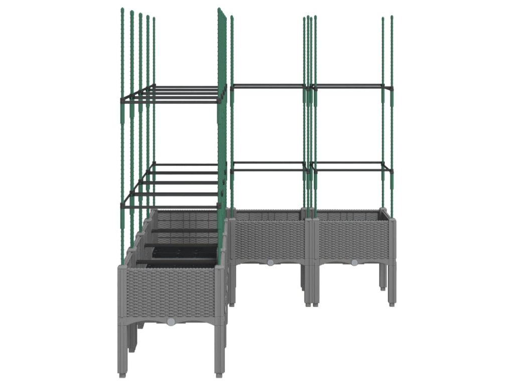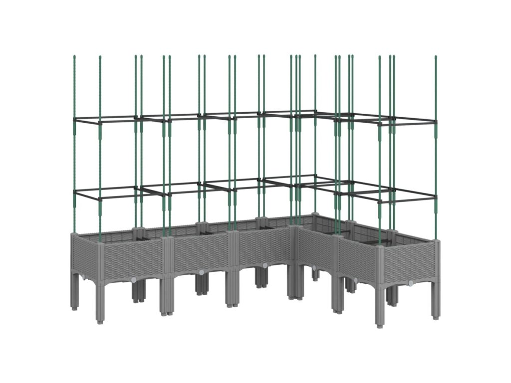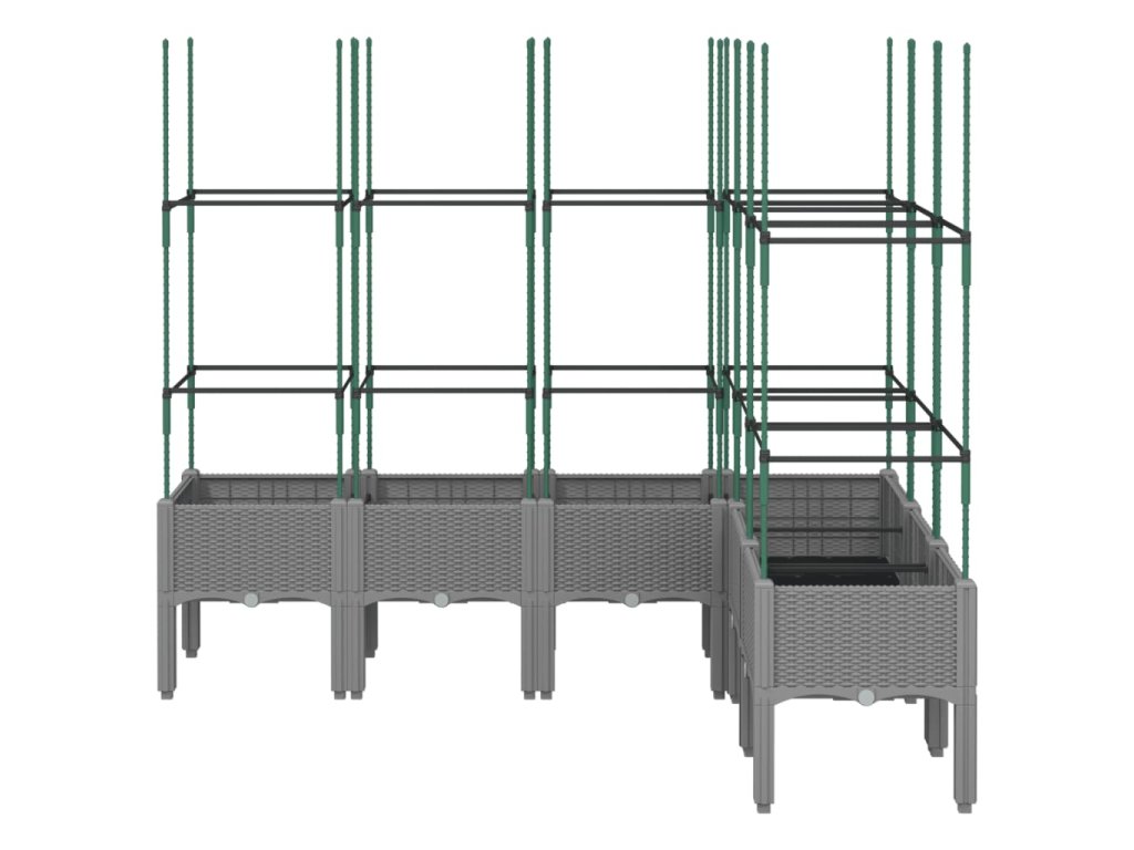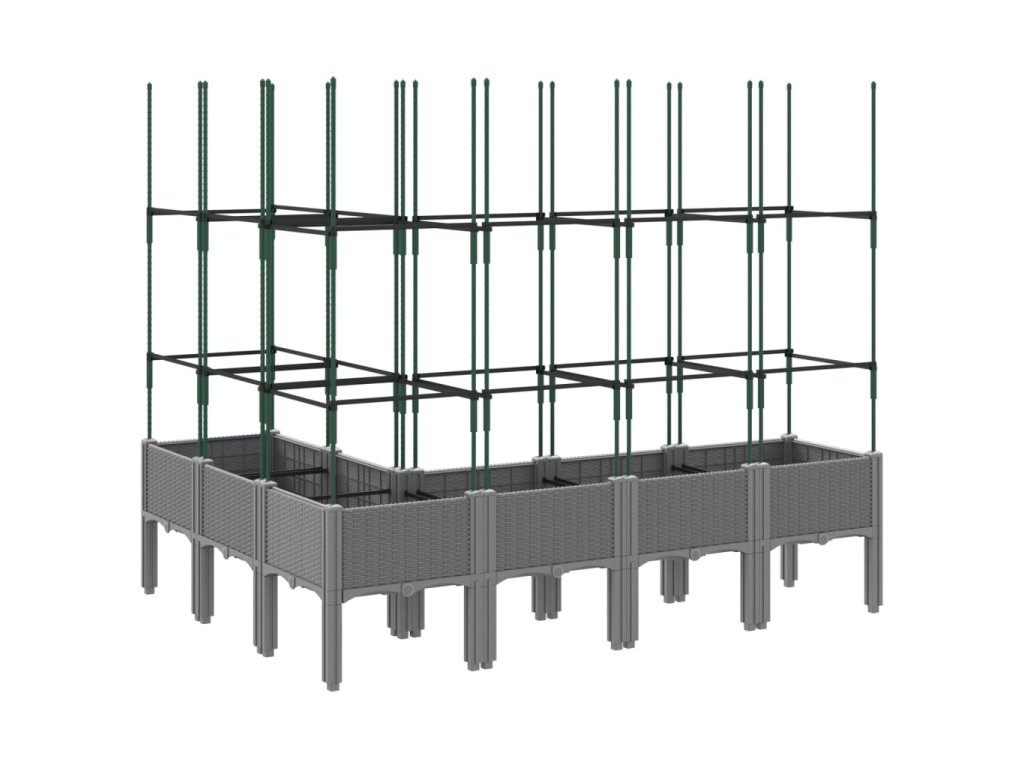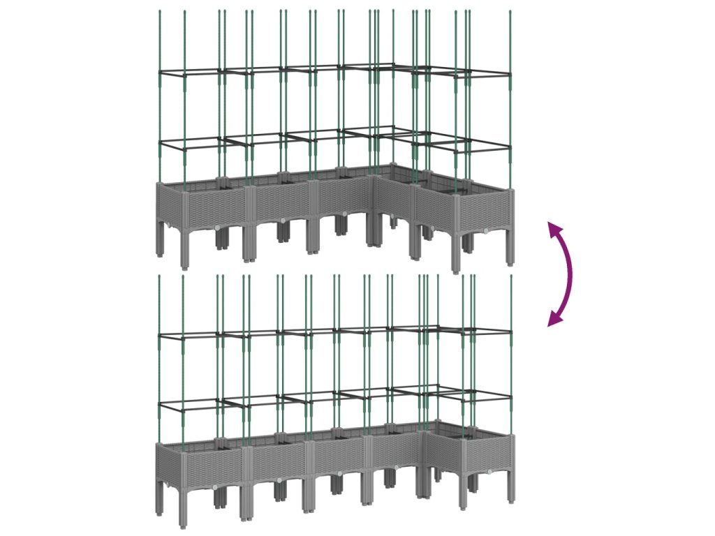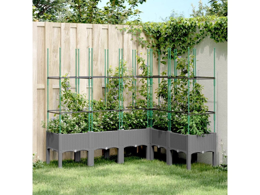 - Praktický design: Ideální dno pomáhá zadržovat vlhkost a umožňuje snadný odvod vody. Vestavěná treláž navíc nabízí oporu pro růst popínavých rostlin, jako jsou rajčata, hrášek nebo růže.