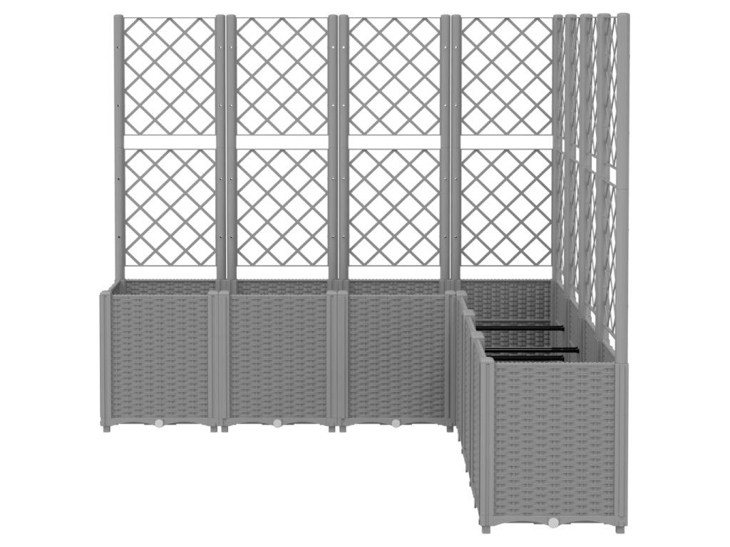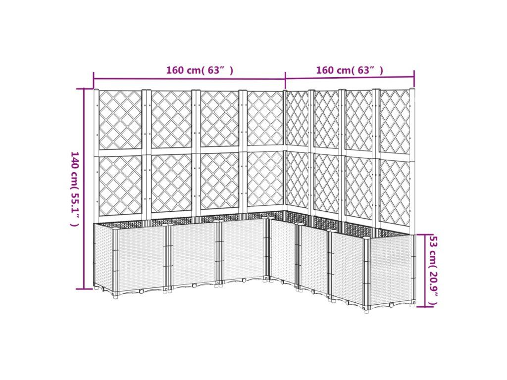 - Praktický design: Ideální dno pomáhá zadržovat vlhkost a umožňuje snadný odvod vody. Vestavěná treláž navíc nabízí oporu pro růst popínavých rostlin, jako jsou rajčata, hrášek nebo růže.