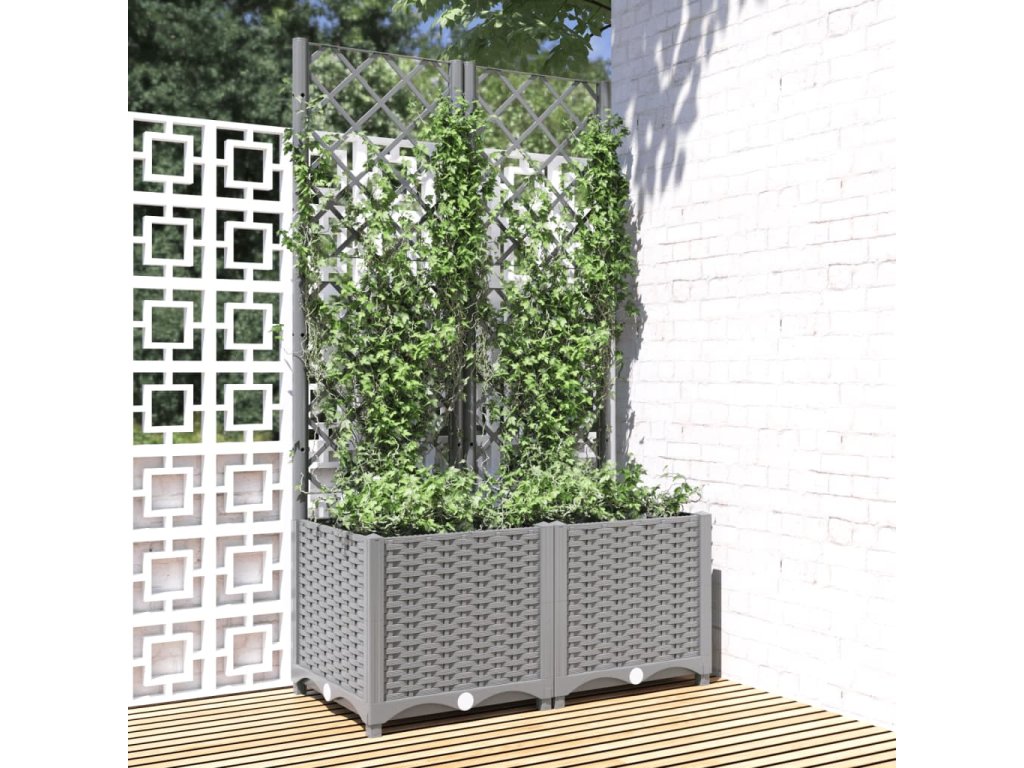Tento zahradní truhlík s treláží představuje skvělé řešení pro pěstování popínavých rostlin na zahradě, verandě nebo terase.