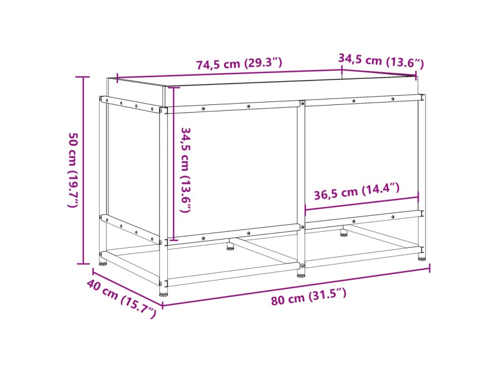 - Vnitřní rozměry: 74,5 x 34,5 x 34,5 cm (Š x H x V)