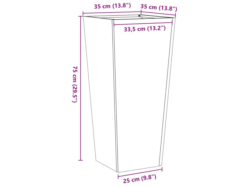 - Robustní materiál s dlouhou životností: Truhlík je vyroben z oceli, skvěle proto odolává povětrnostním vlivům a je vhodný pro dlouhodobé používání venku. Zároveň poskytuje dostatečnou stabilitu a zabraňuje převrácení.