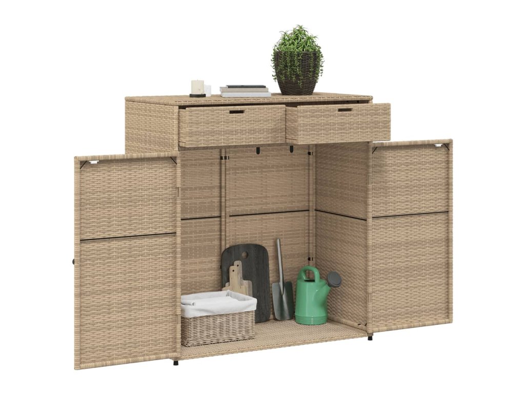 - Dostatek úložného prostoru: Tato venkovní úložná skříň nabízí spoustu úložného prostoru, který můžete využít k uschování vašeho zahradního nářadí, hraček k bazénu, venkovních podušek atd.