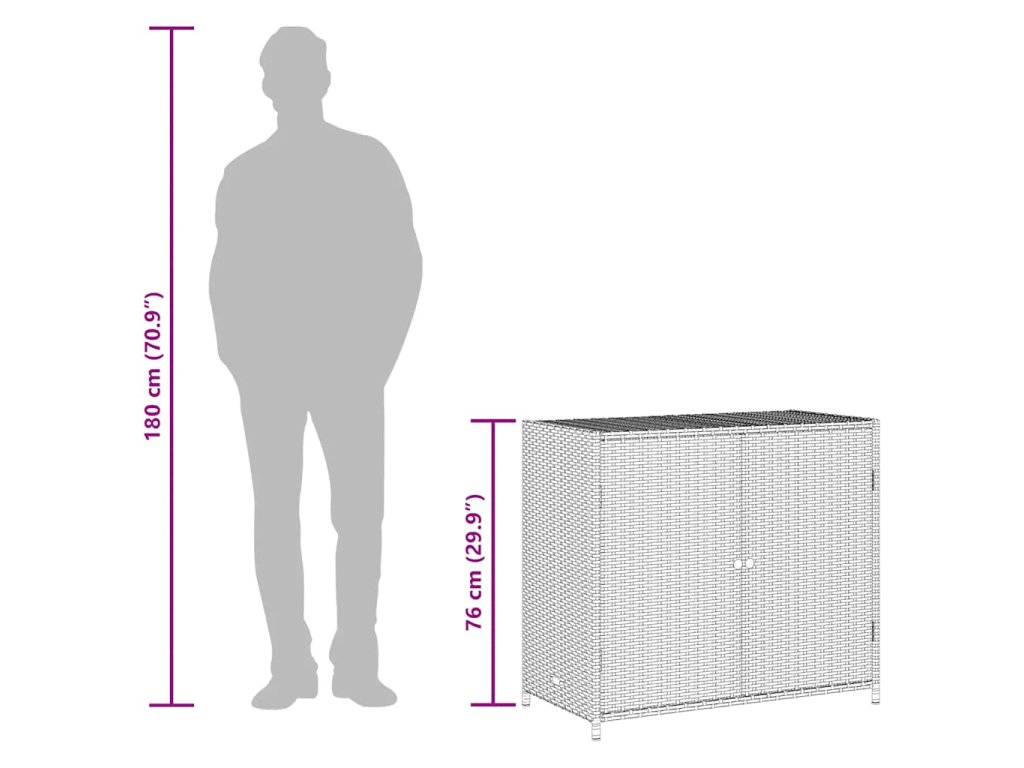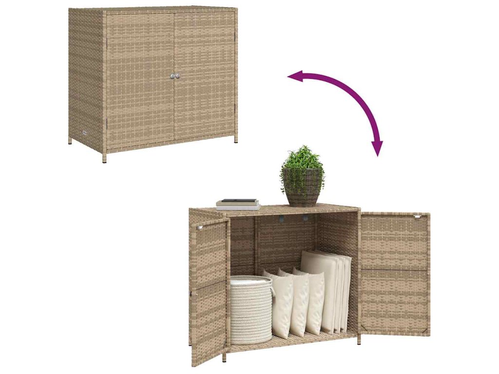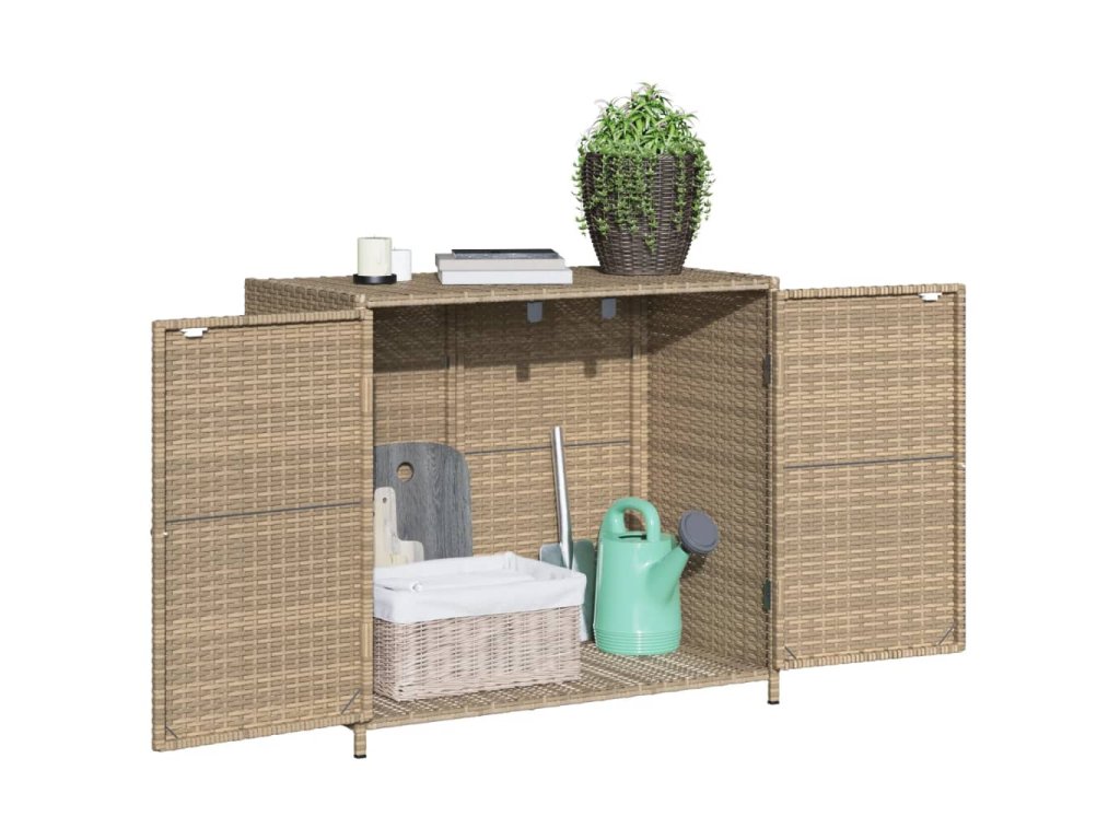 - Dostatek úložného prostoru: Tato venkovní úložná skříň ukrývá za dveřmi velký úložný prostor, který můžete využít k uschování vašeho zahradního nářadí, hraček k bazénu, venkovních podušek atd.