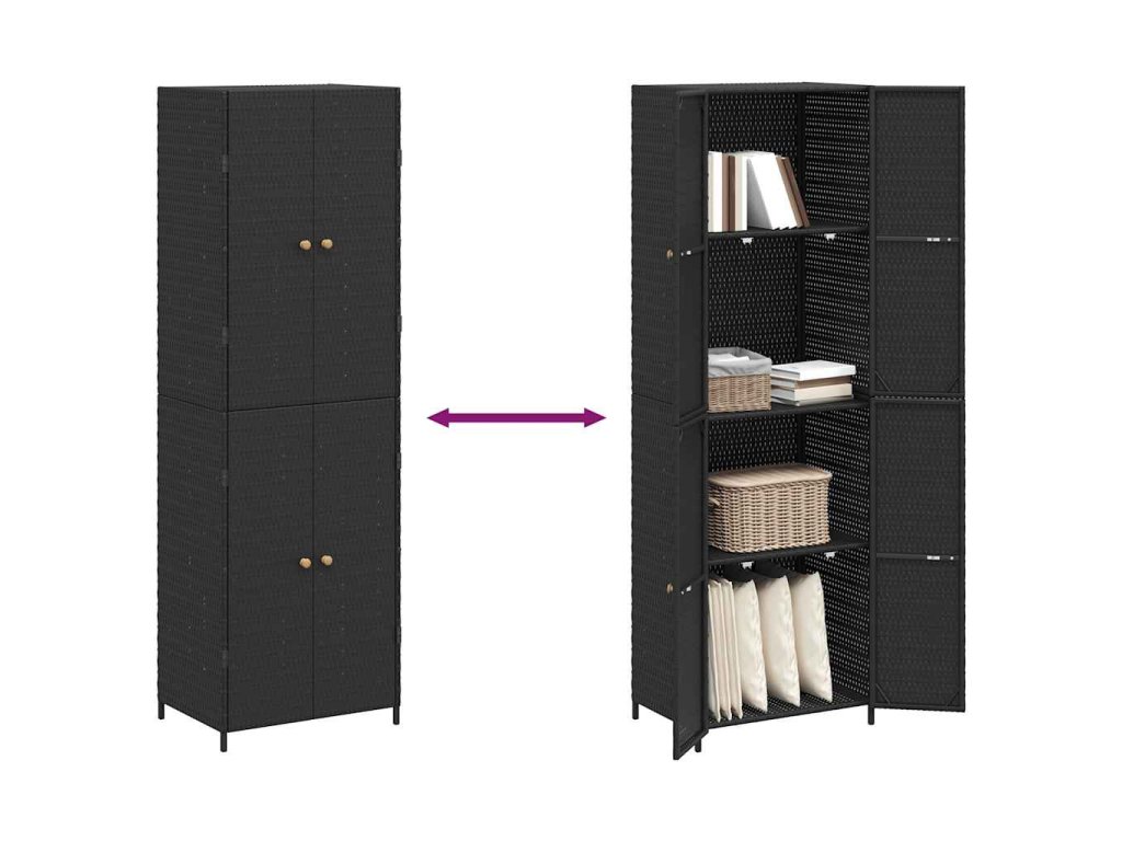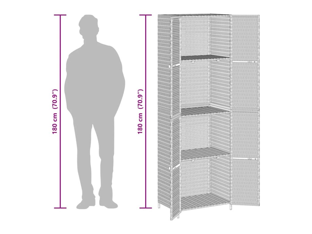 - Odolný materiál: Polyratan je mimořádně odolný materiál, který vydrží všechny možné povětrnostní podmínky. Navíc vyžaduje minimální údržbu. Úchytky na dveřích jsou vyrobeny z masivního akáciového dřeva, které má hustou strukturu a vysokou pevnost.