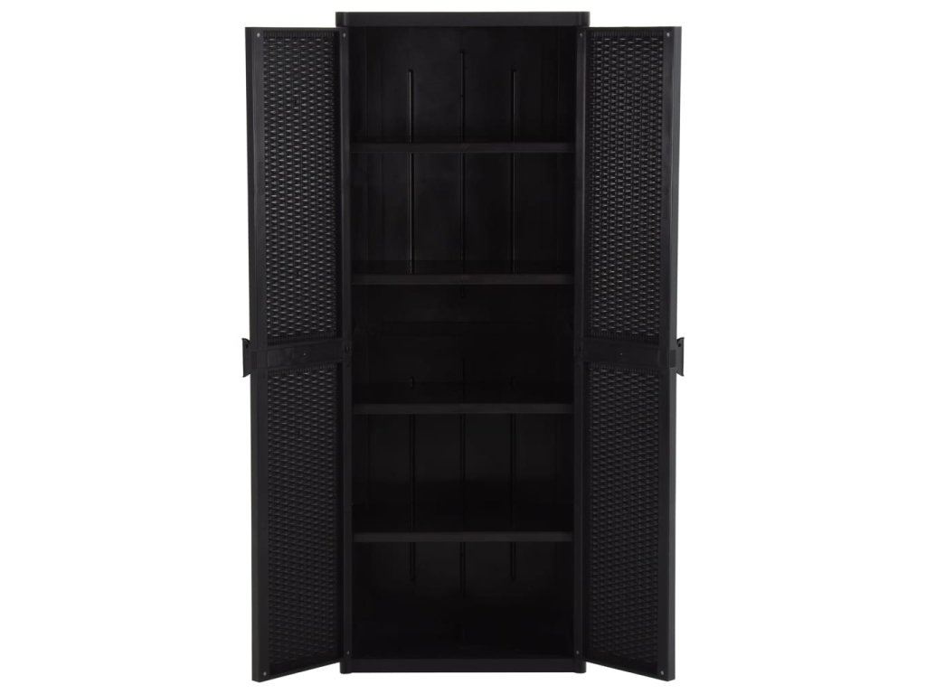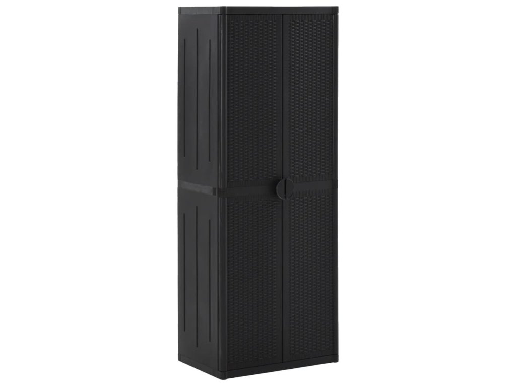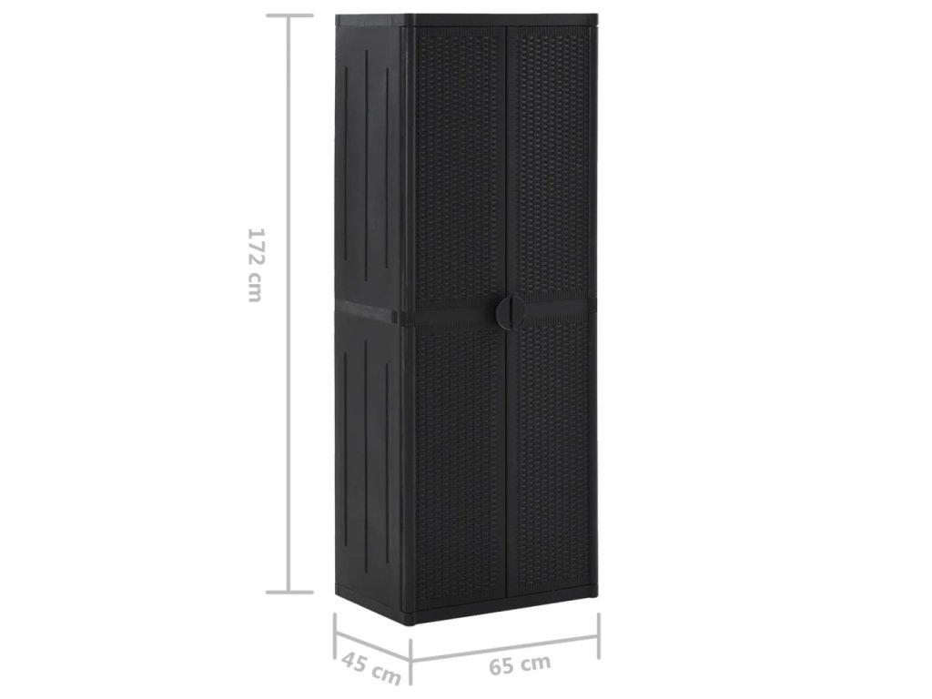 Tento úložný box je vyrobený ze 100% PP (polypropylenu), takže je odolný a snadno se čistí. Jeho 4 police poskytují dostatek prostoru pro přehledné uspořádání a ukládání vašich nezbytností, jako jsou utěrky, prací prostředky, kartáče a další. Všestranná skříň splní například na terase všechny vaše požadavky.