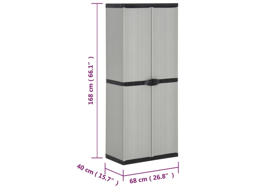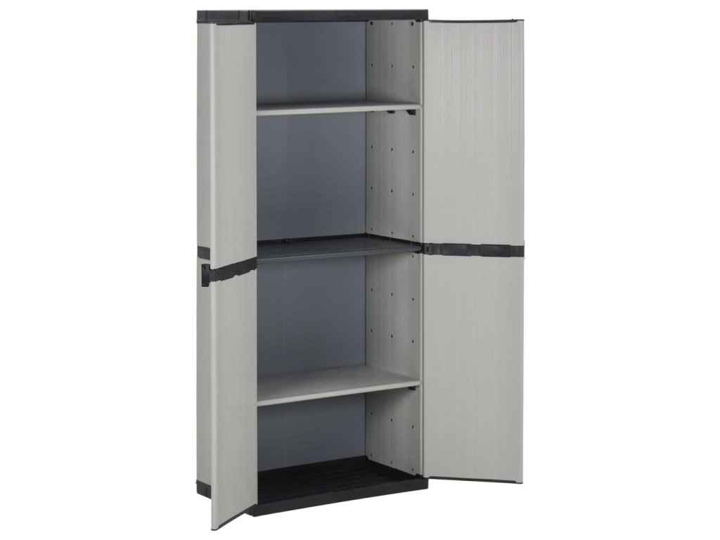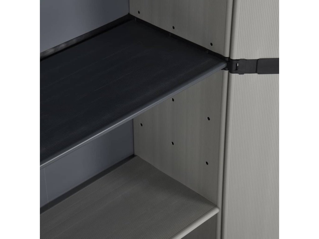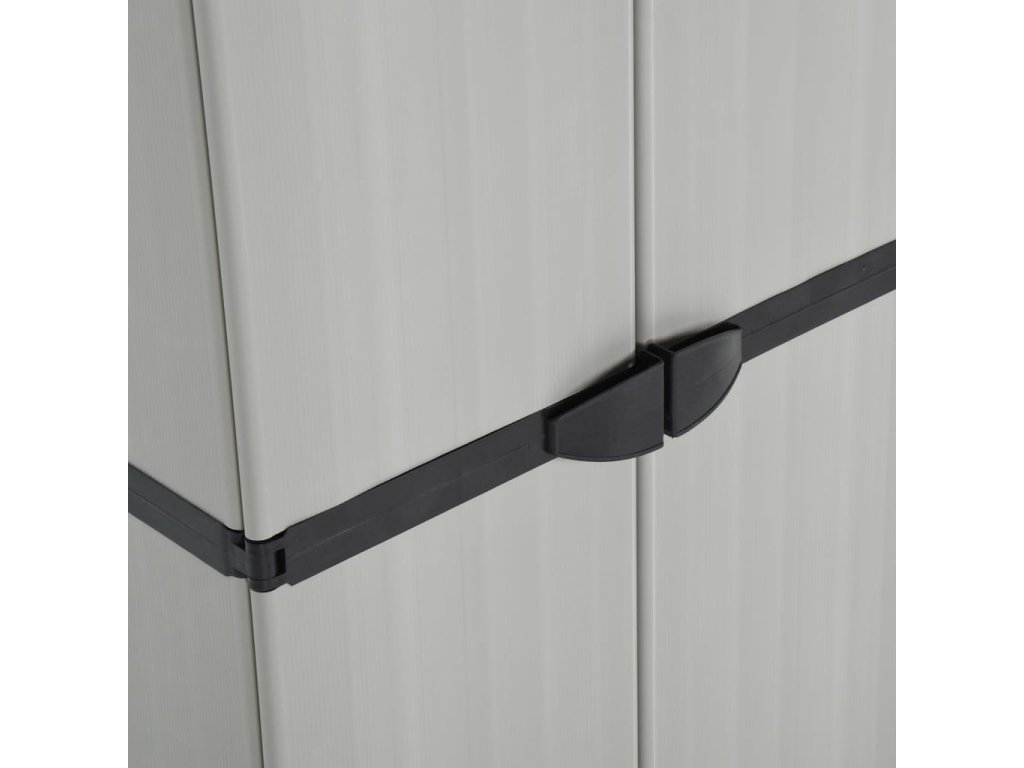 Skříň na terasu je vyrobena z PVC a PP (polypropylenu), takže je robustní, dlouho vydrží a snadno se čistí. Tato skříň na balkon je vybavena 3 policemi, poskytne vám tedy spoustu úložného prostoru pro všechny důležité věci, které chcete mít přehledně uschované a na dosah ruky. Venkovní skříň lze pro větší bezpečnost uzamknout visacím zámkem (zámek není součástí dodávky). Zahradní skříňka má kompaktní design a maximálně využije omezený prostor.