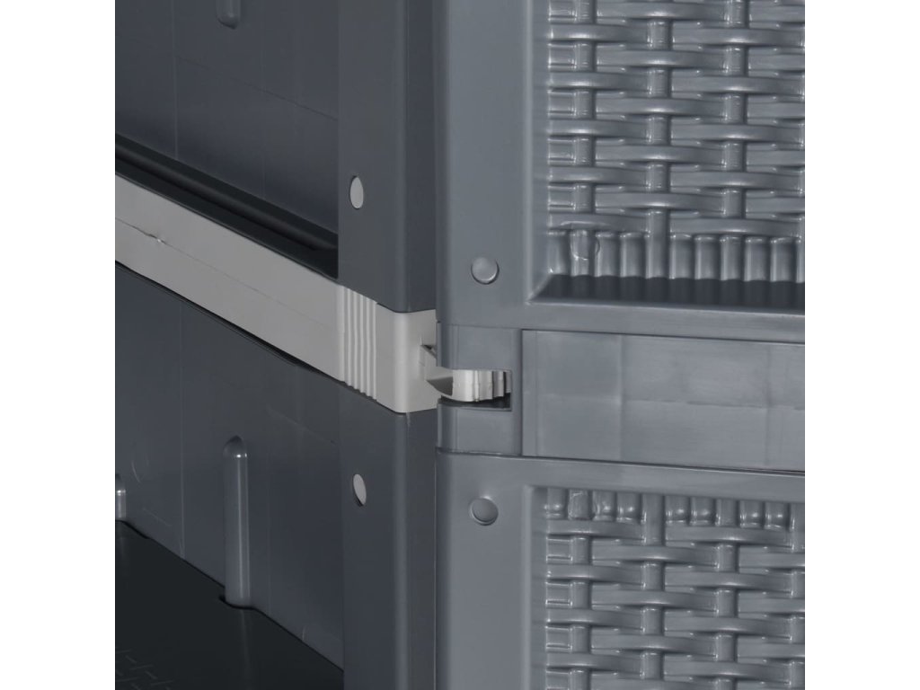 - Odolný materiál: Skříňka je vyrobena z polypropylenu. Polypropylen (PP) je oblíbený plast, který je také jedním z nejpoužívanějších materiálů ve venkovních výrobcích. Je lehký, pevný a odolný proti nárazům.