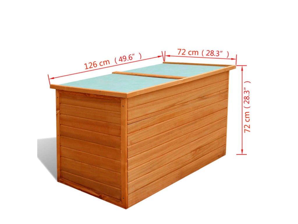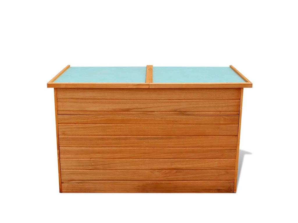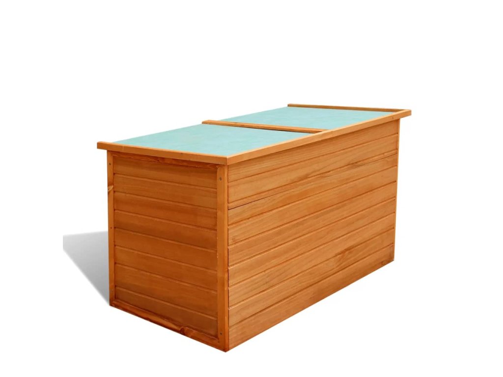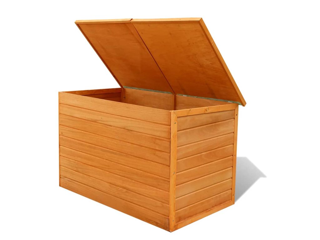 Tento nepromokavý dřevěný úložný box bude ideální venkovní skladovací prostor na přikrývky, polštáře, hračky a další předměty, které by se jinak povalovaly na zahradě nebo na terase.