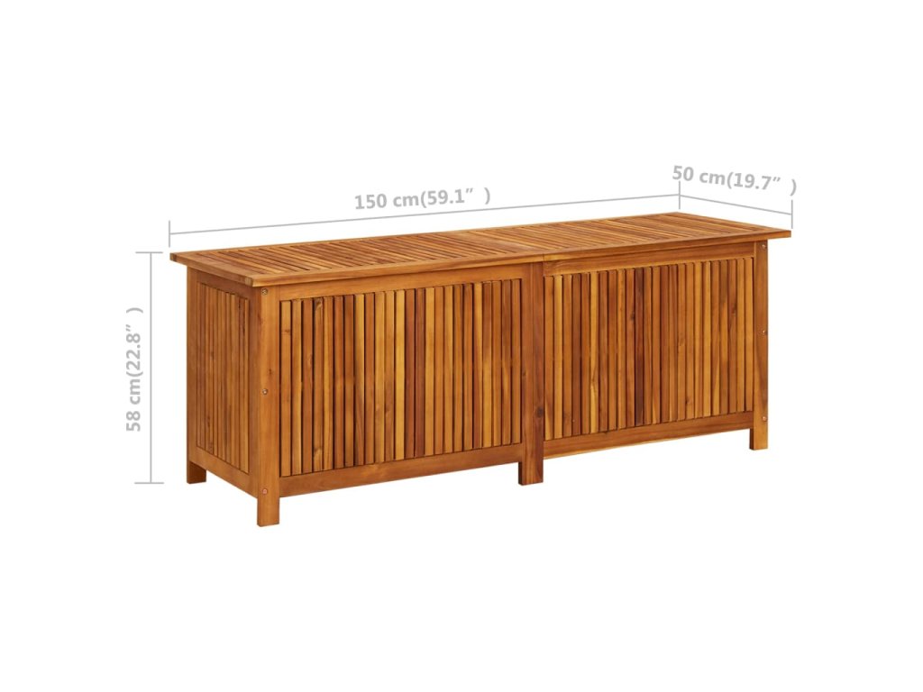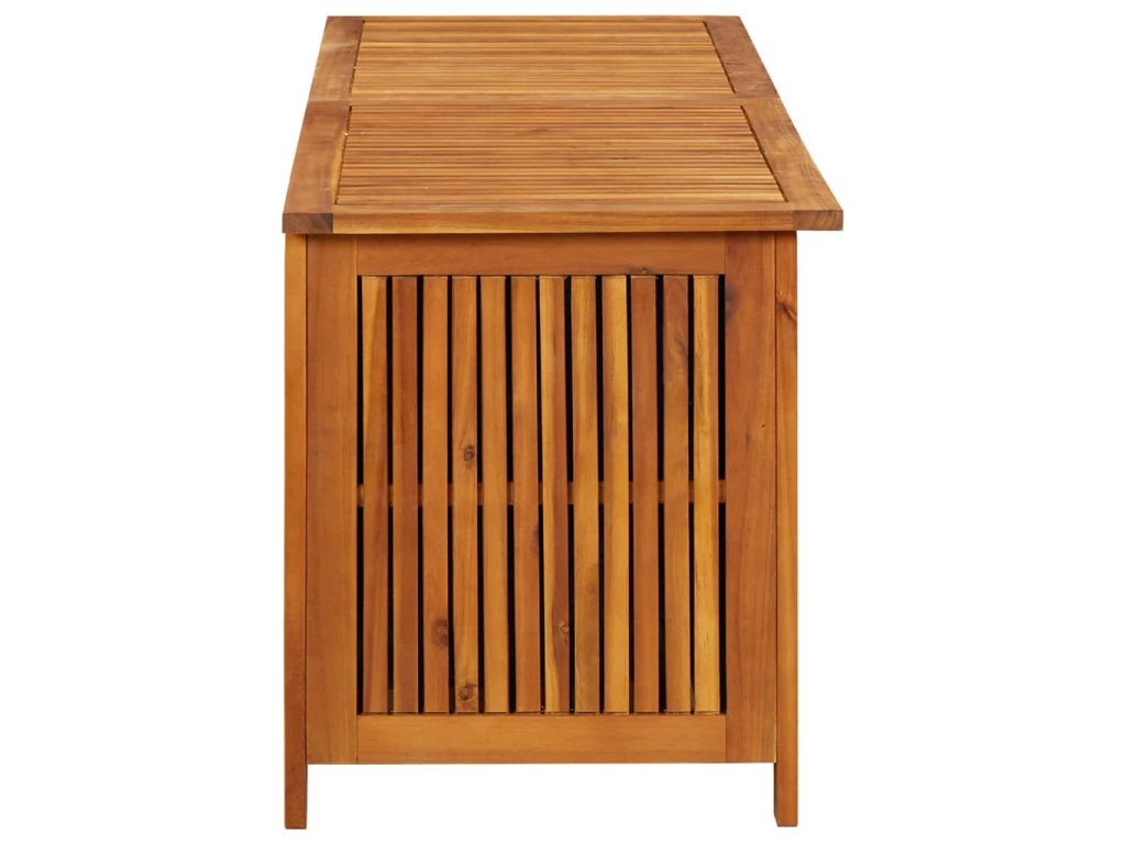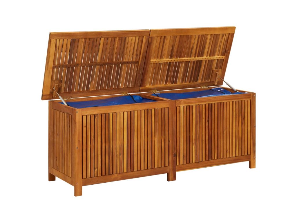 Box na podušky je vyrobený z masivního akáciového dřeva s olejovaným povrchem. Uvnitř má voděodolnou výstelku se zipem, takže je velmi odolný, má dlouhou životnost a hodí se pro venkovní použití. Zároveň představuje dokonalé úložné řešení na podušky, polštáře, deky či jiné zahradní nebo domácí potřeby, které v něm budou přehledně uložené a v dosahu ruky.