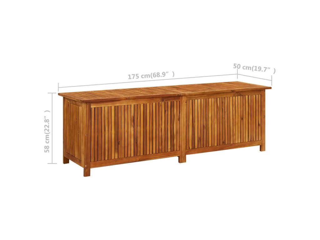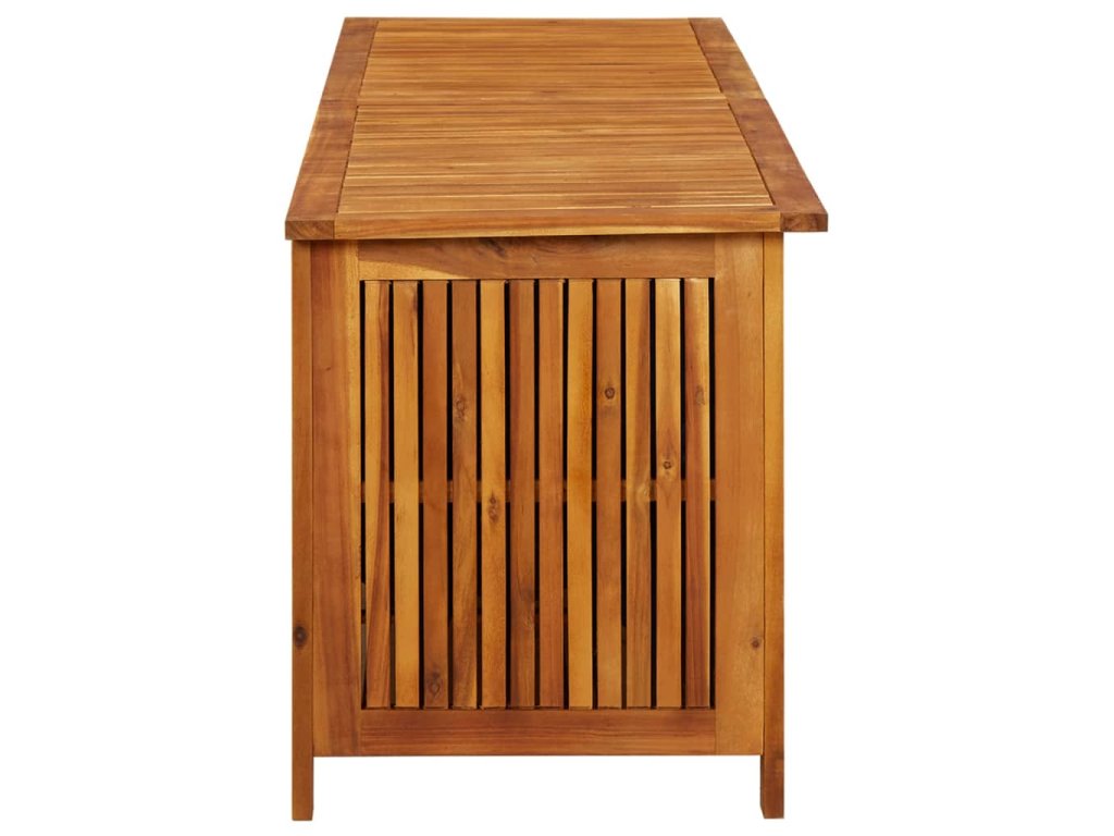 Box na podušky je vyrobený z masivního akáciového dřeva s olejovaným povrchem. Uvnitř má voděodolnou výstelku se zipem, takže je velmi odolný, má dlouhou životnost a hodí se pro venkovní použití. Zároveň představuje dokonalé úložné řešení na podušky, polštáře, deky či jiné zahradní nebo domácí potřeby, které v něm budou přehledně uložené a v dosahu ruky.