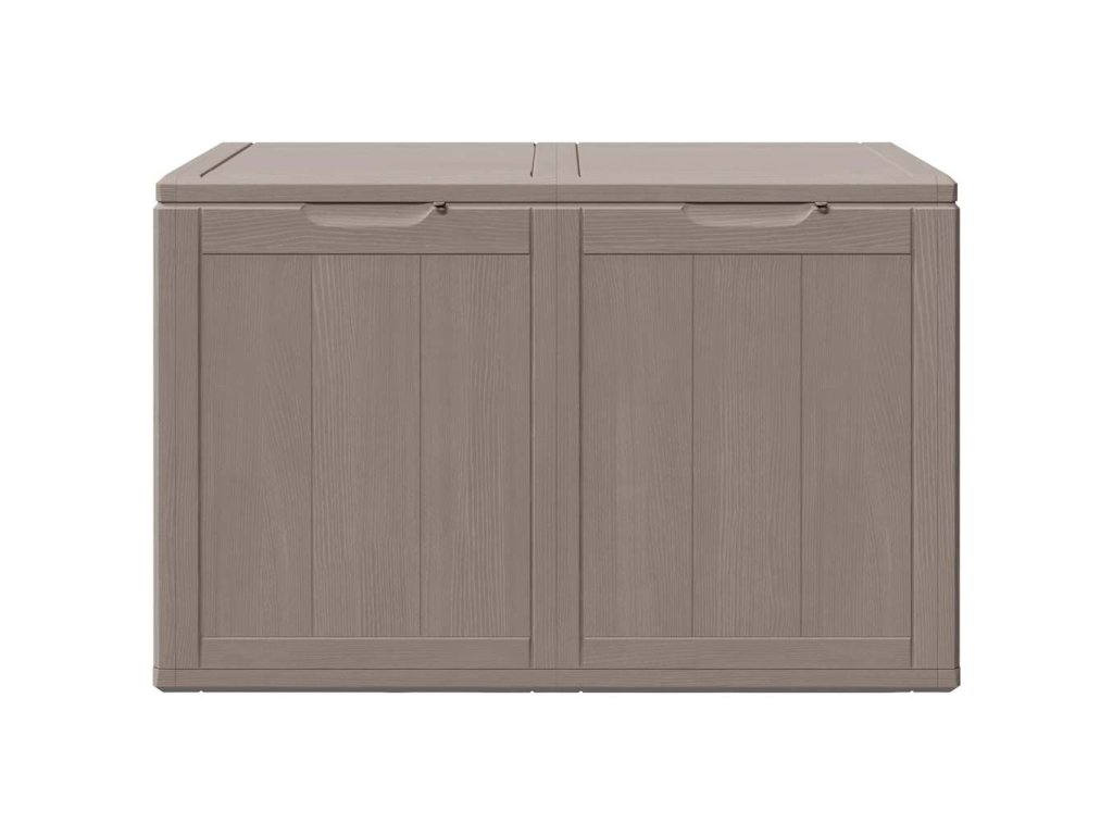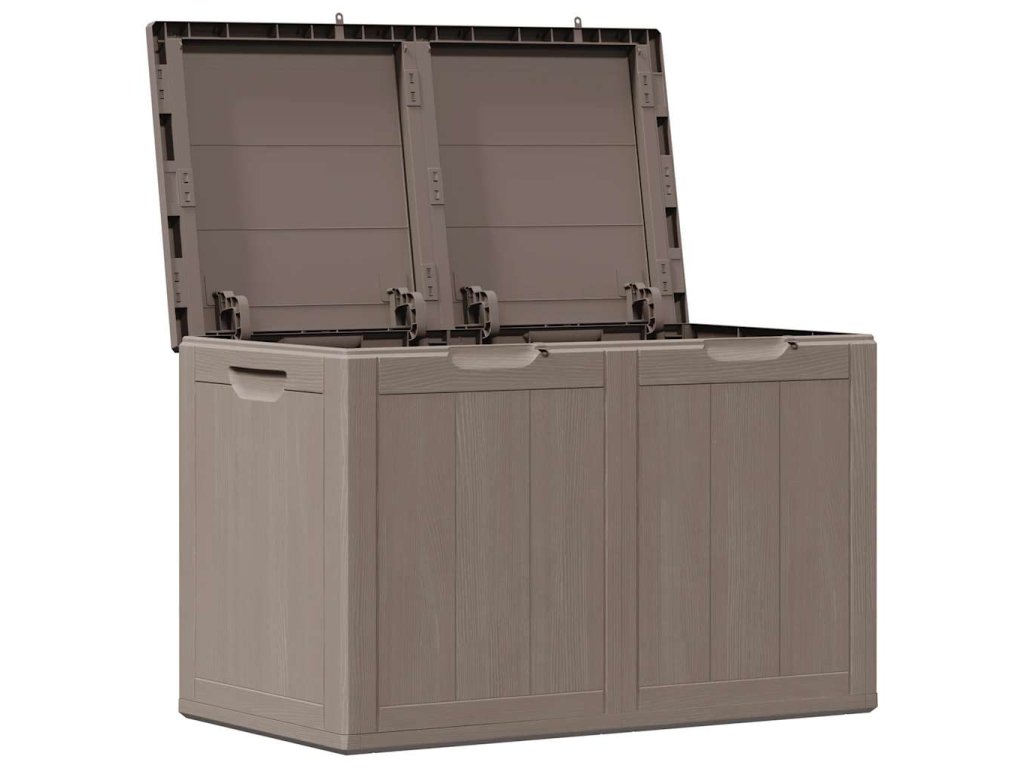 Úložná truhla je vyrobena ze 100% PP materiálu, takže je odolná vůči povětrnostním vlivům, UV záření, je lehká a snadno se přenáší. Zahradní úložný box se vyznačuje decentním, ale nadčasovým designem a dokonale zapadne do vašeho interiéru i exteriéru. Nabízí dostatek úložného prostoru pro podušky, polštáře a další domácí nebo zahradní potřeby, které chcete mít po ruce.