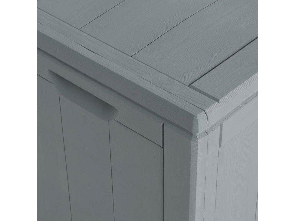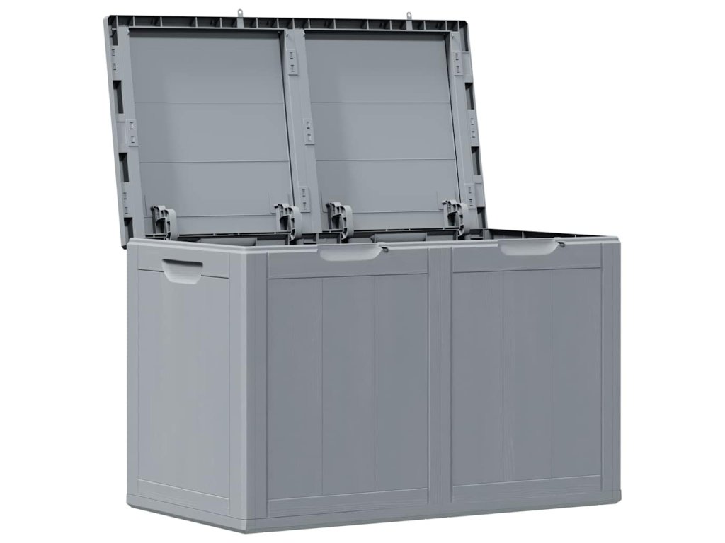 Úložná truhla je vyrobena ze 100% PP materiálu, takže je odolná vůči povětrnostním vlivům, UV záření, je lehká a snadno se přenáší. Zahradní úložný box se vyznačuje decentním, ale nadčasovým designem a dokonale zapadne do vašeho interiéru i exteriéru. Nabízí dostatek úložného prostoru pro podušky, polštáře a další domácí nebo zahradní potřeby, které chcete mít po ruce.