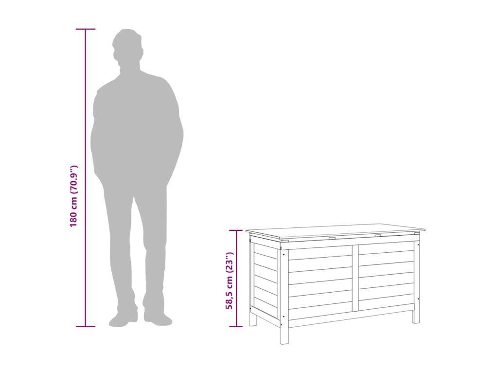 - Prvotřídní materiál: Masivní jedlové dřevo je krásný přírodní materiál. Při vystavení vlhkosti jedlové dřevo nevysychá ani se nekroutí. Venkovní úložný box je vyroben z masivního jedlového dřeva, takže je odolný a robustní.