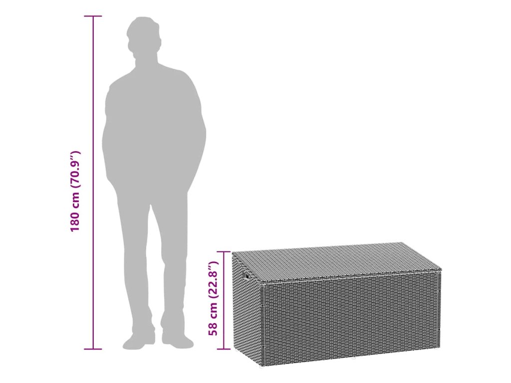 Tento zahradní úložný box je ideální pro přehledné a snadno dostupné uložení polštářů na venkovní nábytek, zahradnických potřeb, ručníků k bazénu a dalších předmětů.