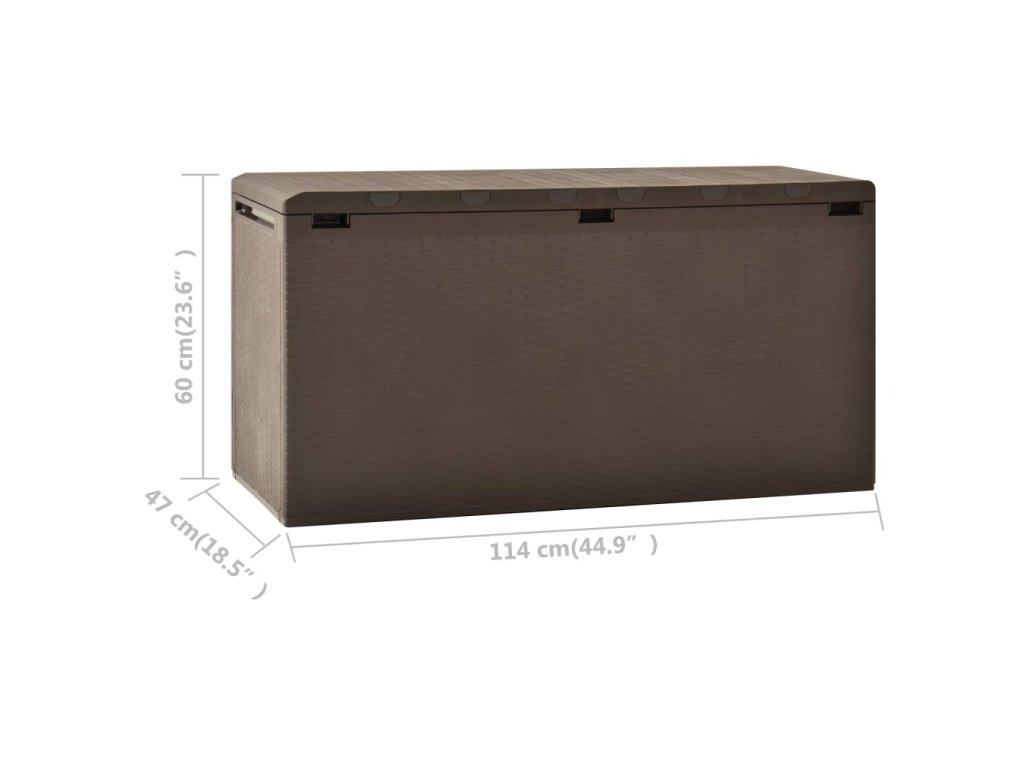 Pokud si chcete uklidit na zahradě, dvorku nebo terase, náš stylový box pro vás bude to pravé. Je prostorný, takže pojme veškeré vaše podsedáky, polštářky, deky, hračky a další věci, které venku běžně používáte. A jelikož má velmi solidní a pevnou konstrukci, můžete ho používat též k ukládání vašeho nářadí.