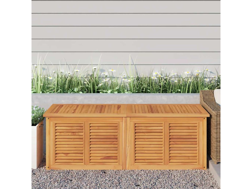 - Povrchová úprava na vodní bázi: Krásná povrchová úprava dodává venkovnímu úložnému boxu teplý odstín.