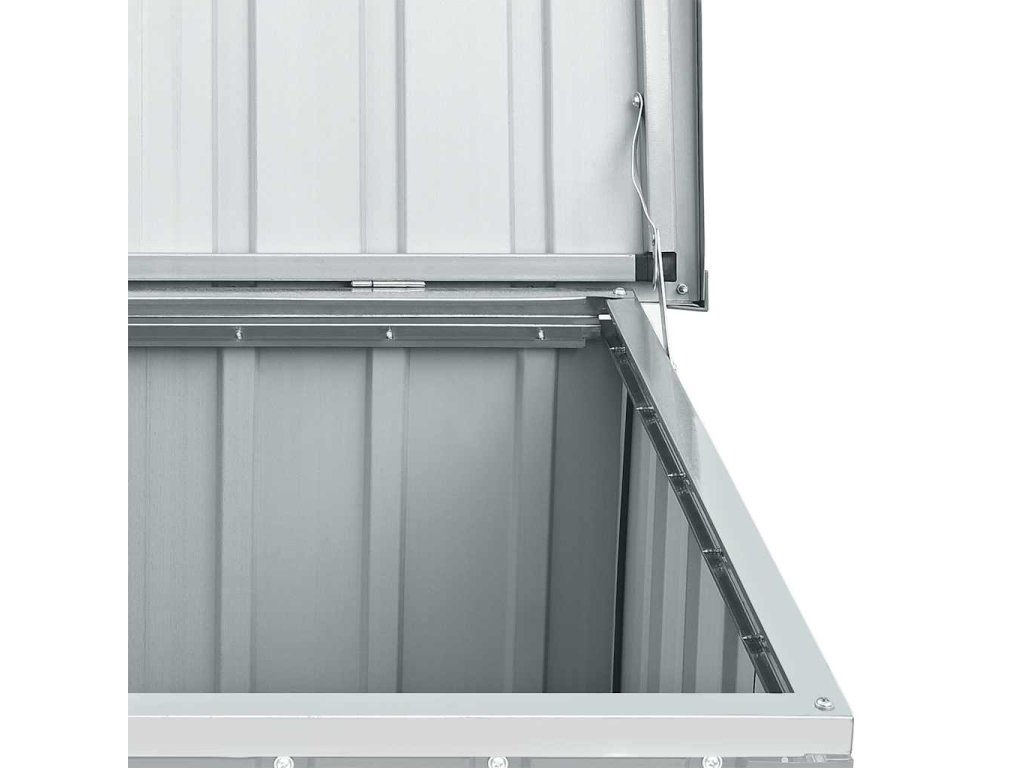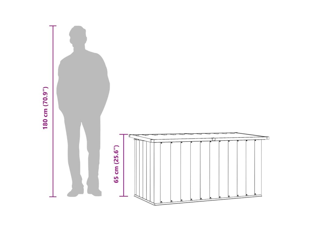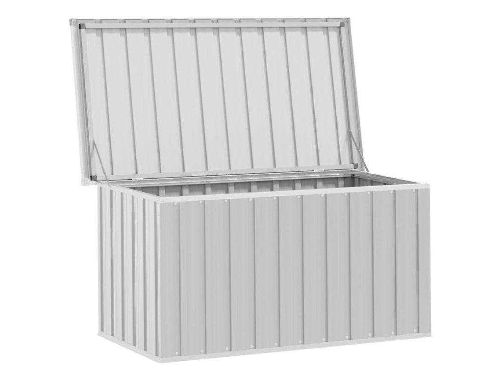 Prostorný zahradní box je vynikající pro uložení polštářů, přikrývek, dek a dalších předmětů. Díky své pevné konstrukci jej lze také použít jako bednu na nářadí. Úložný box je vyroben z robustní pozinkované oceli, vhodné pro vnitřní i venkovní použití. Zahradní úložný box má decentní, ale nadčasový design, který se hodí do každého interiéru.