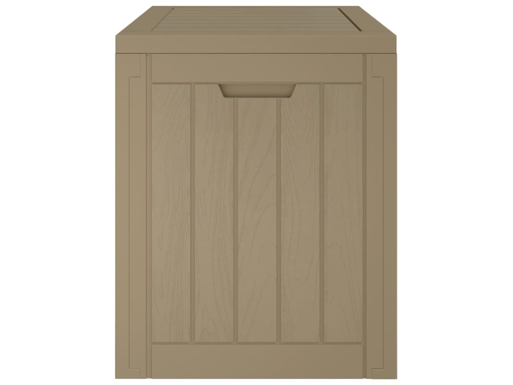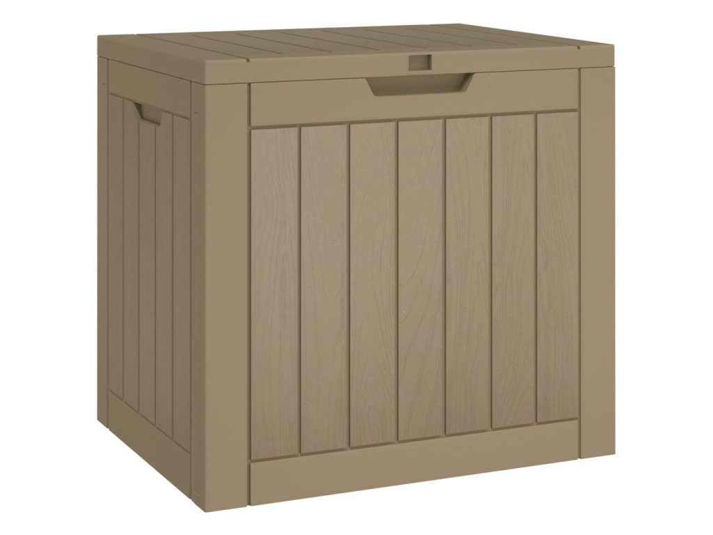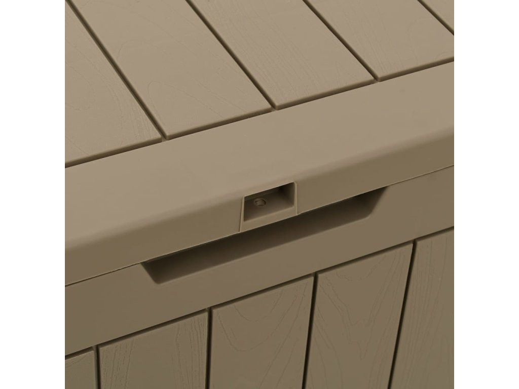 - Design s texturou imitující dřevo: Zahradní úložný box imituje dřevěnou texturu, která dodá vašemu venkovnímu obytnému prostoru přírodní kouzlo.